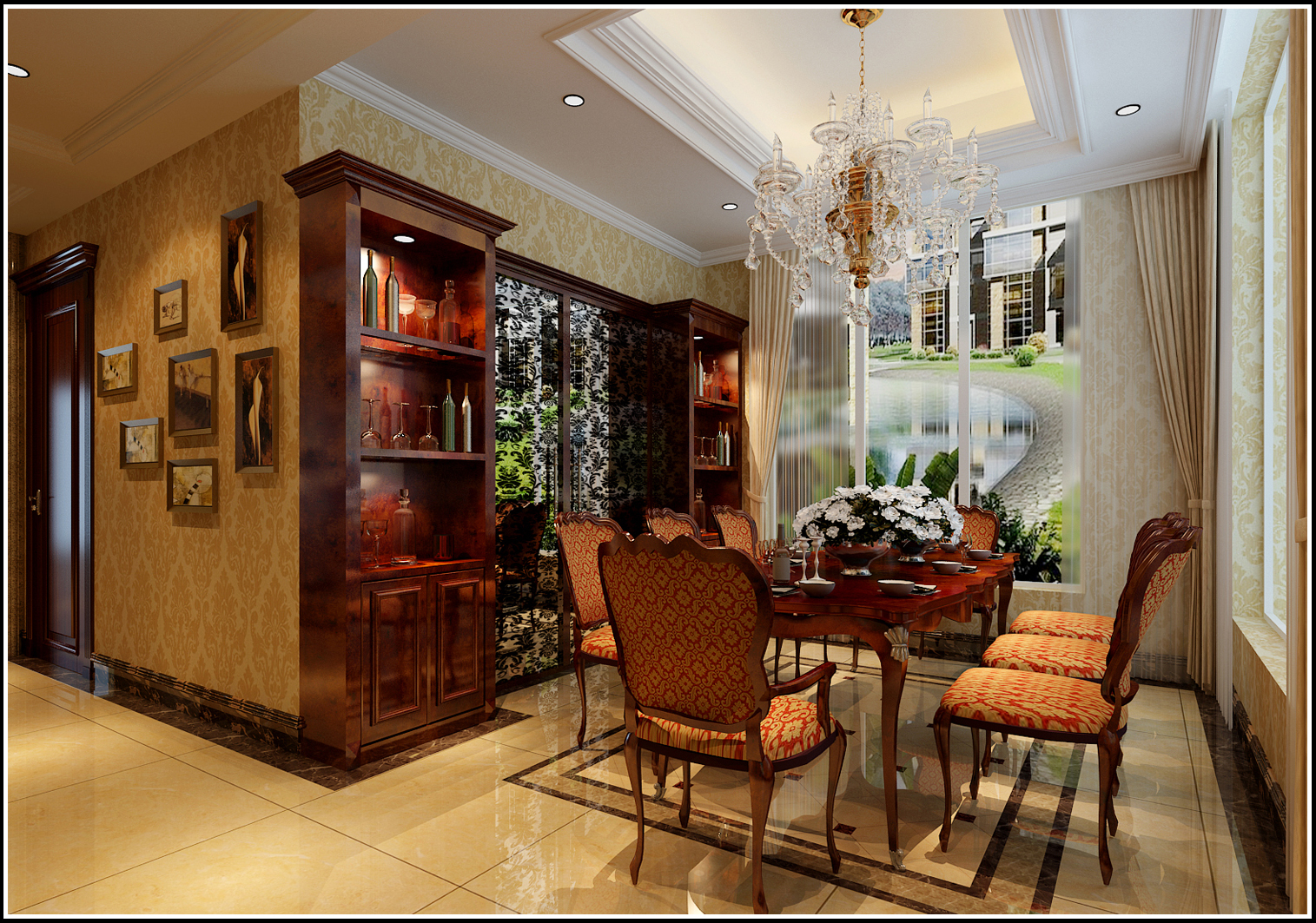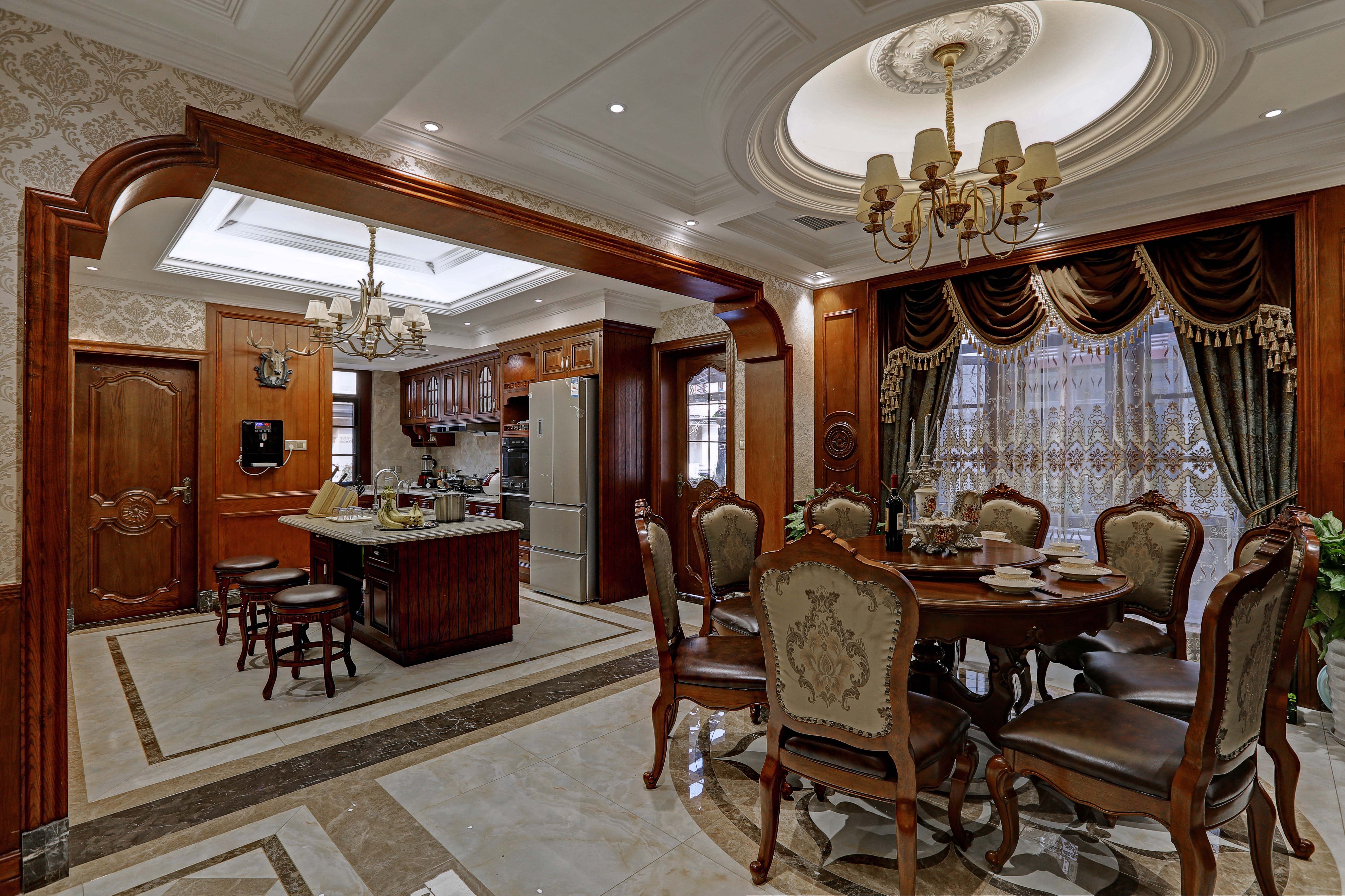 前言: 本案通过墙面、地面色彩的合理融合,运用灯光的光合效果,让客厅空间凸显出辉煌的格调,让整个空间折射出高贵大气的布局。充分考虑业主的喜好、需求,将持久、魅力、沉淀、古朴不同的设计主张合理运用于不同性质的空间中,给每个空间营造出多层次的时代感。