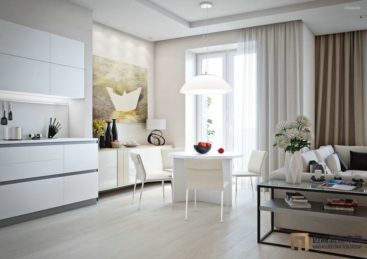 前言: "唯一纯白的梦里花,盛开在琥珀色月牙,天空透露着微光,照亮虚无迷惘"像这首歌唱的一样,纯白美丽,简单肃静。开放式的厨房让扩大了空间感,以白色作为基调,尽量抛弃可能对空间造成累赘的设计,没有过多的装饰,没有过多的摆设,每件都是必须每件都是精品,为了调剂空间的层次感,采用了灰色抱枕和浅黄色系壁画和花束来提高空间的活跃度和气氛,安静而沉寂,像是精灵,总是在不经意间带给你惊喜和改变。卧室背景的浓墨重彩给整个房间注入了一股春日活力。这样的空间更能让人放空,每日从熙熙嚷嚷的人群中回到安静的小窝,该是怎样一种幸福啊!有时候我们要求的不多,就是想要这样简单的生活!喜欢就关注我们吧,公众号:maigao_sh 官网:http://www.maigaozs.cn/ 咨询电话:13918041618