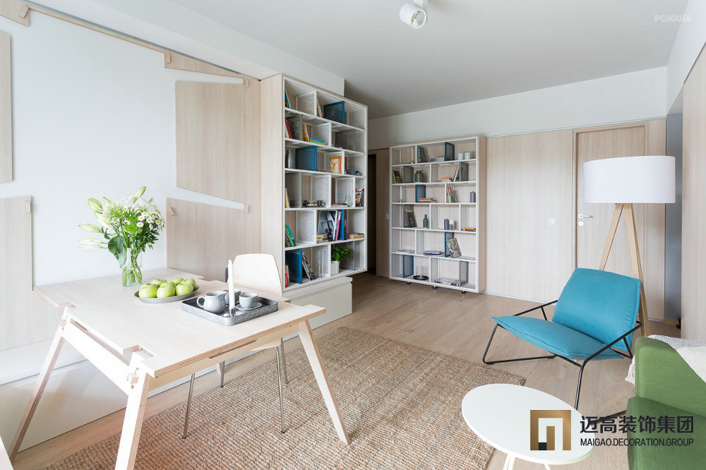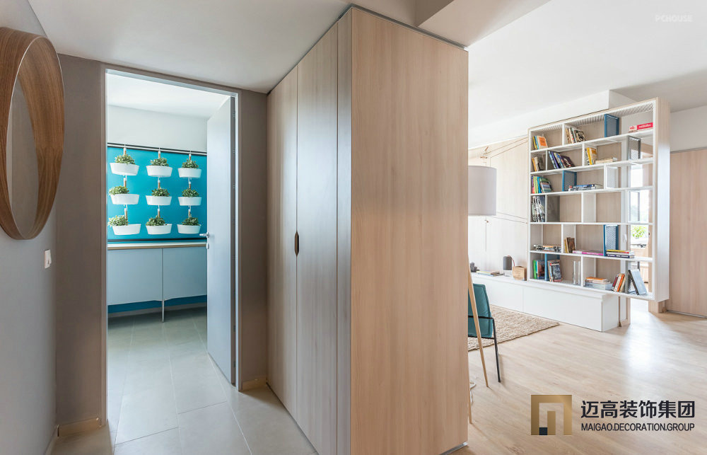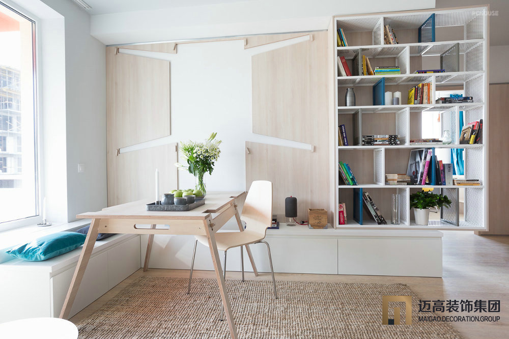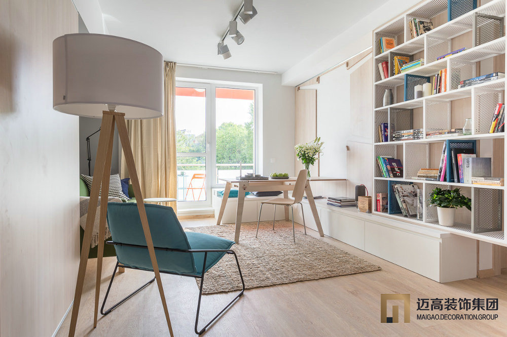 前言: 浅色原木与白色基调一直是简约家的标配,这里把客厅的小桌子和墙体融入了一体,把原木不大的客厅空间瞬间释放,同时让客厅得到多样化的利用。棉麻材质的地毯让空间有了层次感,却又保证了空间的整体性,多宝阁式的书架和摒弃了传统的原木材质,采用了白色漆染的网格隔板,灵活易用,同时凸显出一种年轻时尚感。可移动的书架绝对相当实用,无论在哪个房间都能轻松hold住。卧室的绿色植物标本和原木色相搭配一股自然清新风迎面扑来,像是身处大自然,让人身心得到完全的放松。男女主都很爱旅游,希望家里能贴近自然些,所以家里到处都是绿植,让整个空间都有了生机。很多隐藏的储物柜设计,这样的好处是既能随手一拿,也能随手一扔。懒人的福音,生活就该随心一些。上海迈高装饰设计,电话:13381722929 欢迎关注:maogao_sh 官网:http://www.maigaozs.cn
