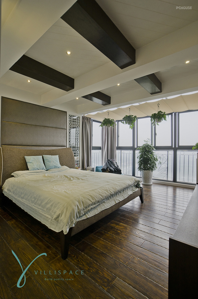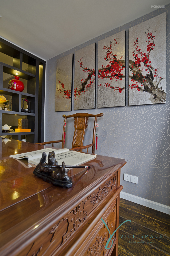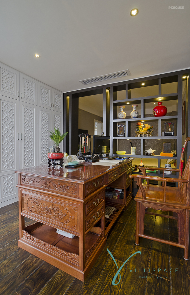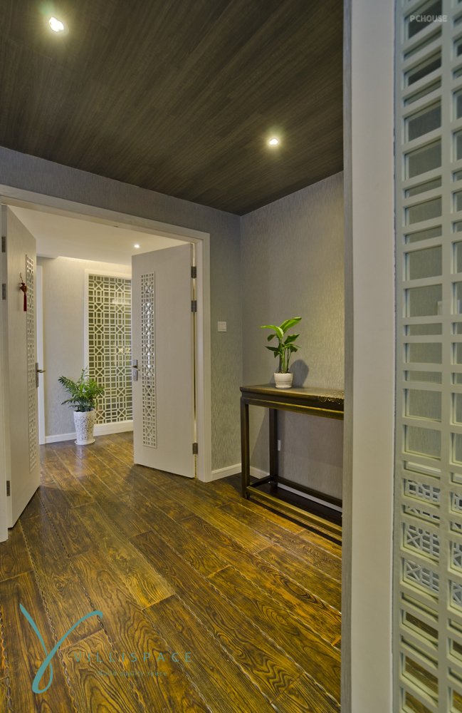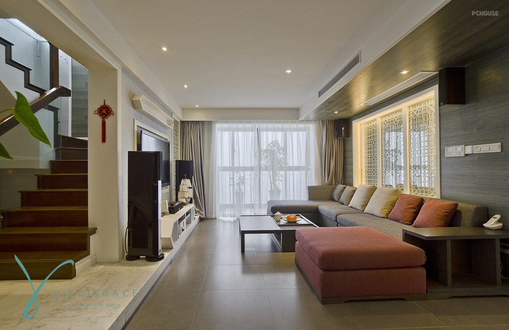 前言: 复式的房子近几年来在城市里大行其道,这种结构的房子本身空间较大,每户都有较大的采光面,通风较好,布局紧凑,功能明确,相互干扰较小。虽然没有别墅的奢华,但是经过设计师的巧手装扮,也能体现出别墅的大气。 本案为复式加阁楼,总面积达250平,空间本身较大。但是,如何把这三层的空间巧妙的和为一体,既满足主人的生活需要,又满足其审美需要仍旧是需要大费周章的。 功能区域的改造 无论多大的空间,首先要满足的是各个空间的功能性。设计师首先考虑的是功能区域的划分,在多方协商后,根据主人的要求和房子本身的特点首先进行了房屋结构的改造和功能区域的细分。 设计师多次思考构图后最终把房子的三层空间分成三个不同的主要功能区域:第一层主要是会客区和公共活动空间,包含了客厅、客卧和厨房三个不同的功能区域,满足了主人交际会客的需求;二楼为主人的私密空间,设有主卧、书房、茶室等几个区域;阁楼的空间则被设计成娱乐休闲和贮藏区,包含了影视厅和贮藏室。 三层空间各有其不同的功能性,通过楼梯的链接形成一个息息相关整体,既层次分明又密不可分。 古典与现代并存 业主本身从事雕塑设计,本身对形体的塑造和空间的审美都有一定的见解。在充分了解到业主两代人的生活需求和共同的审美追求后,设计师把此案的整体风格定位为现代中式。 近几年来现代风格的建筑和室内设计风格盛行,甚至已经到了目不暇接的程度,但是,中国人骨子里的那份中式情结却永远是挥之不去的,特别的功成名就后的人们,更是喜欢中式风格里面的那种含蓄、典雅和天人合一的和谐。 但是,如果是纯中式的,或明或清的古典风格,却又在一定程度上给人沉闷与沧桑感。