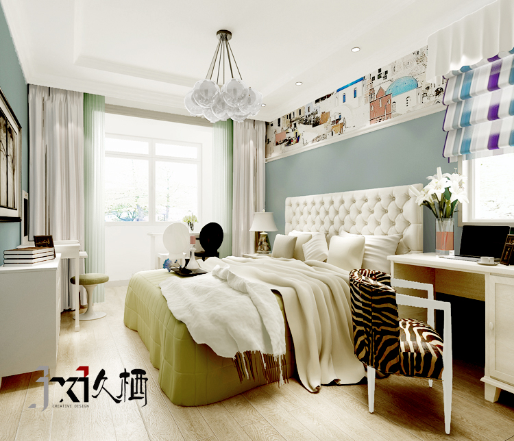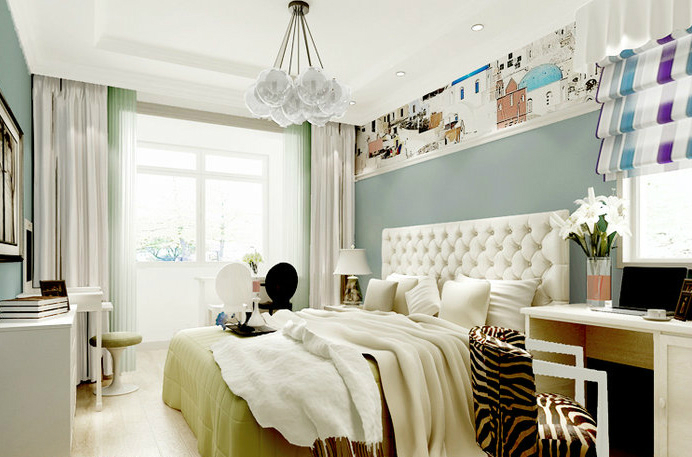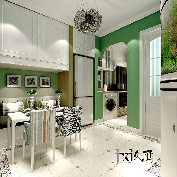 前言: 本案着重渲染时尚气息,以亮色为基调,突出空间的采光优势。整体以清新感为主导,跳出一直以白墙占据半壁江山的传统装修风格,利用色彩与带有具象图案的墙顶面交织在不同空间当中,丰富层次。设计师在把控细节的同时,也避免了小户型当中因过于堆砌所带来的狭小感。合理化布置,略显不同的装饰搭配,颜色上柔和的过度处理,营造出倍感享受与美化的小资生活,让家也能成为您充满艺术的港湾。