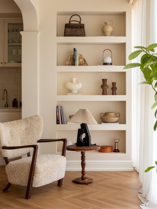 前言: 设计师以艺术情缘作为初心,将屋主收藏化成景点,展现其人文素养,也从中抒发设计者的积极交融人与环境,现实与向往的真挚情怀。艺术与空间两者均为主题,谁也不是对方的附庸,它们共融成独特的游赏环境,也突显出各自美好。 在蓝色海洋石材背景墙下,设计师选择浅系的软装配饰,通过轻盈的组合手法将雕塑、花艺、电视柜组合成和谐统一的一角,没有了常规厚重感,在都会繁华的背后沉淀才是主流。主卧房延续简洁,雅致特色,尽可能淡化空间背景,借舒适的光线效果烘托整体质感。具有艺术感的装饰品总是在不经意间让人眼前一亮,点缀在一片简约的空间中,为居住者营造出优雅而舒适的生活氛围,让美丽景致的背后多了一份值得人细细品味的艺术气息。