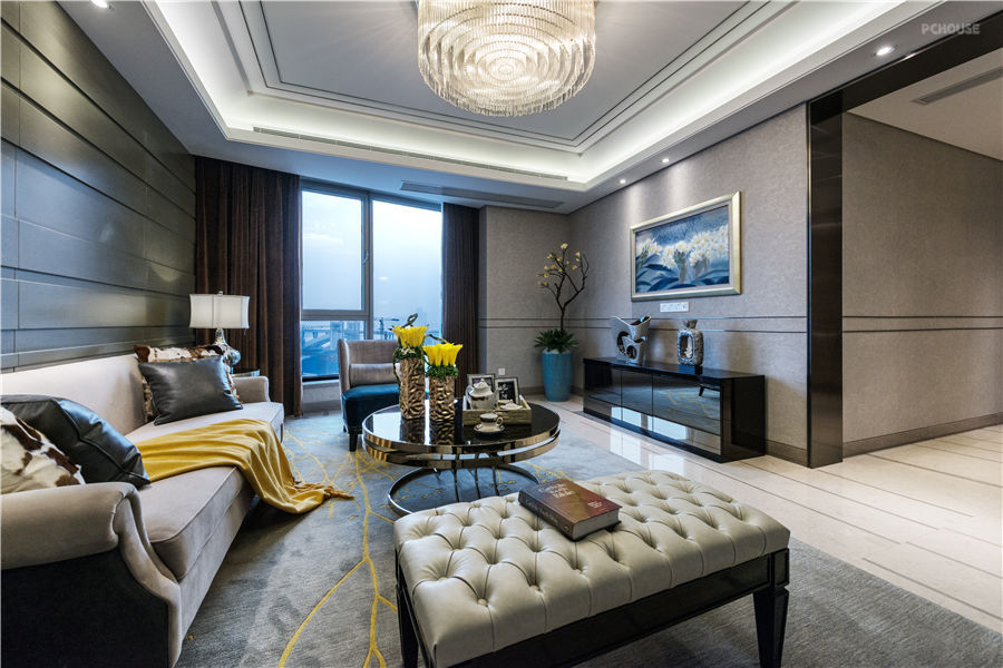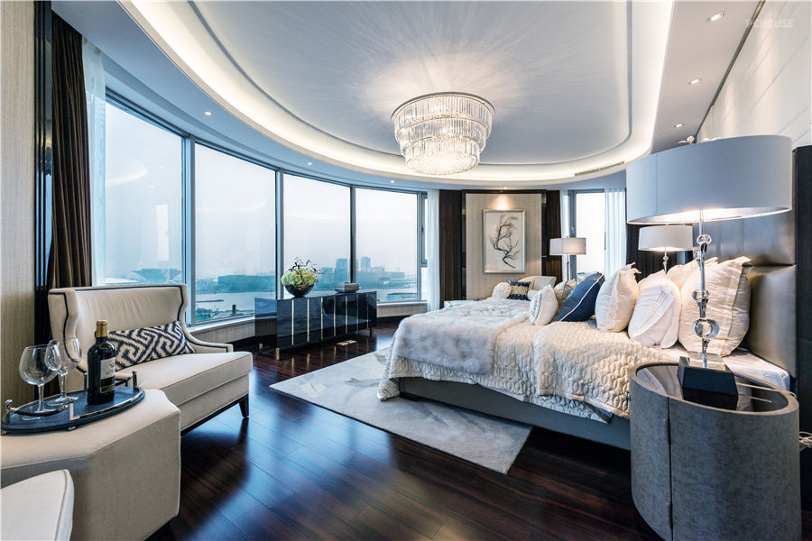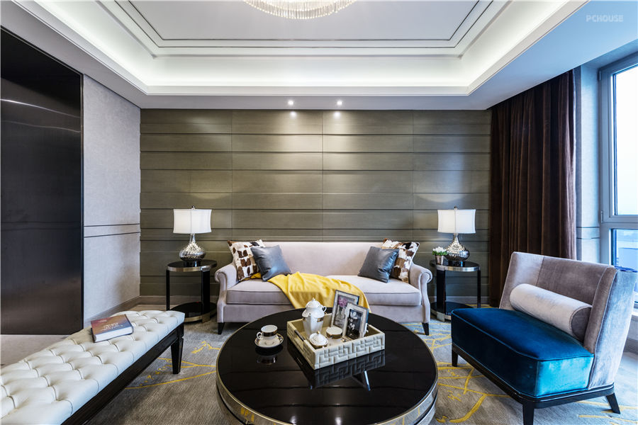 前言: 本案围绕轻盈、欢快、中性的构思,以现代主义风格为主调,在空间平面设计中不受传统对称限制,追求自由开放、独具新意的视觉感官。重点采用了不锈钢、大理石等材料凸显时代感,主要区域搭配色彩浓烈的装饰加以点缀。开敞、内外通透,个性化的线性设计,使得空间布局流畅,各区域自然融合。时尚的家具在开放的环境下,彰显出与众不同的气质。空间的氛围丰富且多元,金与黑呈现的庄重气度,蓝色的典雅,还有极富东方气息的情调。不同的色彩组合,给人带来不同的视觉感知,充分利用色彩先声夺人的力量来制造直观的视觉效果。设计师的时尚眼光与独到见解,赋予了每个空间不同的色彩。再加以融入充满了艺术气息的陈设,使观者充分领略到奢华设计的魅力与价值。设计师非常注重体现个性和文化内涵,在设计中强调人的个性,反对苍白平庸和千篇一律,体现个性化需求。通过可移动的元素,丰富的色彩,增加空间内的文化内涵,为本项目打造了有品味、有特色的空间。
