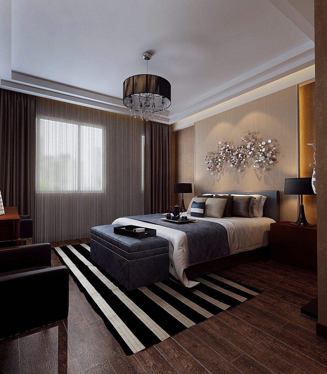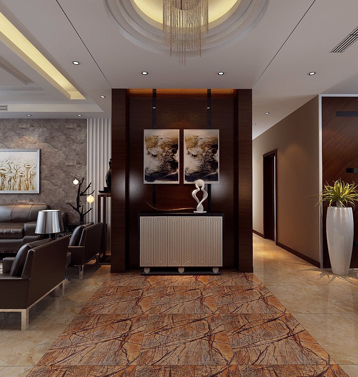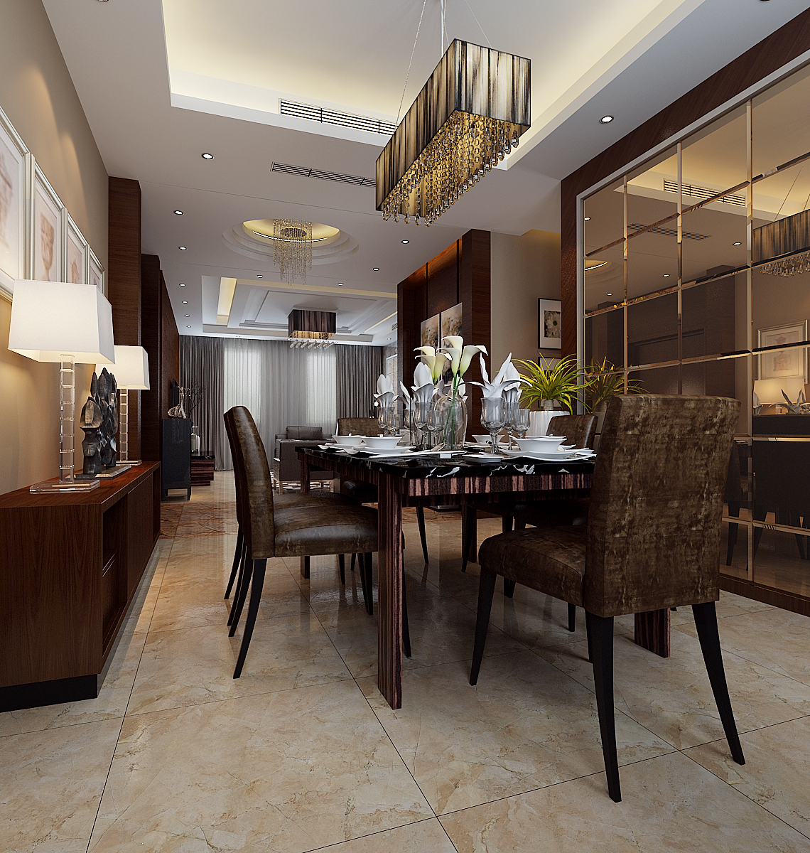 前言: 水巷深处,似月映琉璃; 树影婆娑,似舞女摇曳。 港味如斯,日久而弥新。 设计说明:港式风格多以金属色和线条感营造金碧辉煌的豪华感,简洁而不失时尚。港式风格是码头文化与殖民地文化的产物,对于钢性材料与线性材料的运用确是到了极致,换句话说,港式文化属于多源头文化,室内设计潮流多以现代为主,大多色彩冷静、线条简单。 1、3客厅 客厅空间色彩以深色为主,烘托一种沉稳庄重的居室氛围,厚重感极强的沙发及实木质地的电影墙,复古样式的吊灯,无不彰显着居室高贵的品质感和格调内涵,为了提升整个空间的现代感,在采用棕色渐变的方格图案地毯,以及对称的颇具艺术气息的白色花瓶来协调空间的色彩浓度,使空间整体感更时尚个性。 2餐厅 古典的实木与现代的镜面元素交相呼应,打造出极有文化品位的就餐空间,选用白色和棕色的深浅装饰,以简胜繁的处理给人以自然的领悟。 客房 大量使用素雅的云纹装饰,如宫灯、地毯、壁纸等,空间组合舒适,而不失审美情趣,木材的运用也使这些设计具有浓浓的人情味。 女儿房 女儿房的设计现代化,简约明快,根据生活需求,添置了书桌,落地窗和沙发,方便日常的工作学习和接待闺蜜好友。采用毛、皮质地的地毯和家具,墙面壁纸和艺术画的装饰等彰显品质品味,也别具情调。 书房 书房更多地做了收纳功能的处理,设置了一个折角的书柜,方便放主人众多的书籍。方方正正的木质桌椅,造型简约的台灯,绘有传统纹路的地毯,无不彰显着书房庄重与沉着的气场。 主卫 棕褐色的空间,低调深沉充满神秘感,在这个闭合的环境里,一整天忙碌的生活之外,便是寻找这样一处静谧闲适的所在好好舒展放