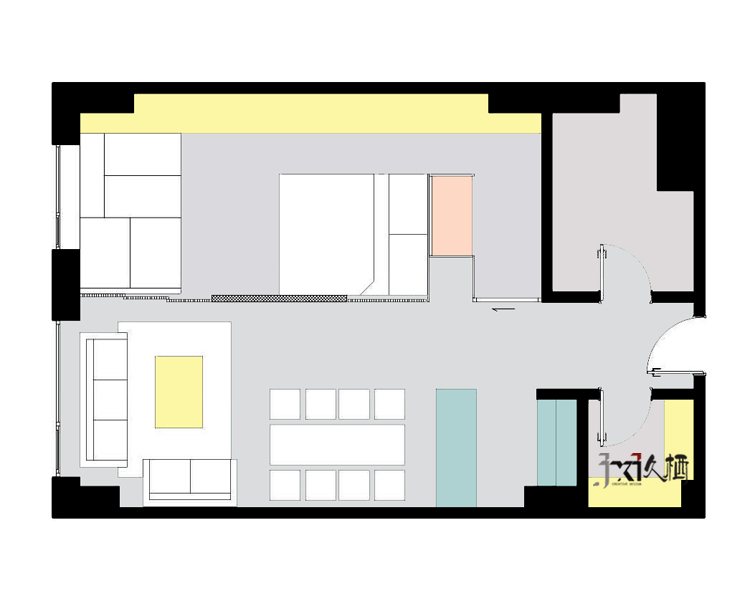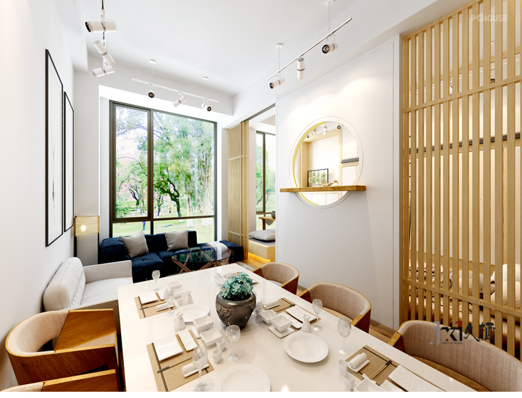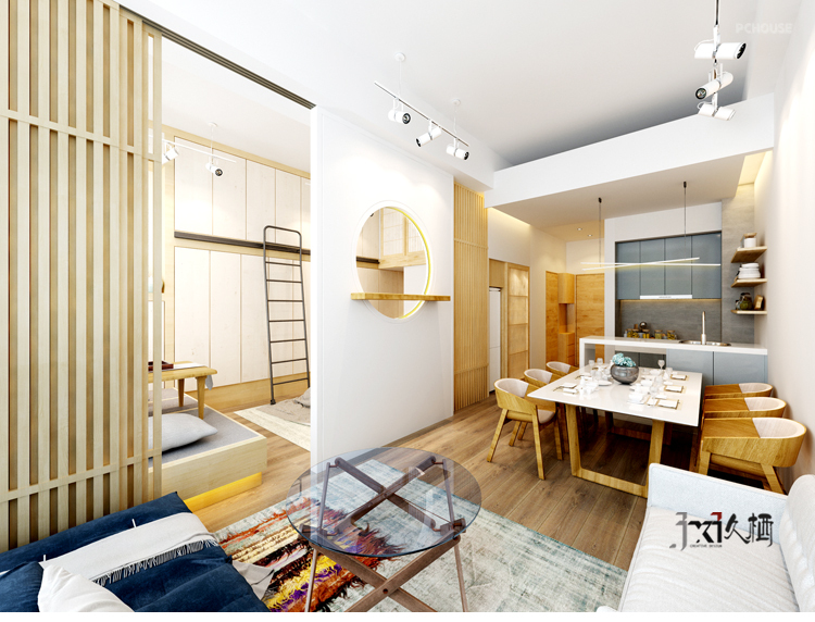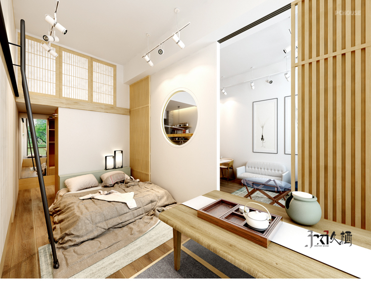 前言: 设计施工单位:久栖设计 地区:北京金茂府 面积:70平米 造价:15万 材料:密度板隔断、实木复合地板、实木榻榻米、开放漆柜类门板、乳胶漆 户型:1室1厅1卫1厨 风格:日式 用途:旧房改造 简介: 以真木质感元素为主的日式风格,恍若清新,简洁淡雅。总是能给人一种追寻自然,环保,优雅的感觉。在大都市中,相对一些“一本正经”的装饰风格,显得尤为突出,低调都掩盖不住的气质经常能受到一些80后有品位人士的热爱。本案位于金茂府,因为有天棚的毛细管网恒温系统,无法开槽走线。设计师利用极简的处理方式,甚至连顶角石膏线都一并舍弃,由顶置地浑然一体,干脆利落,正符合这种日式风格独有的轻快洒脱特点。起居厅与卧室之间由木质推拉门做衔接,中间的圆弧造型墙增进通透呼应,凭添灵动效果。由内而外的架空地板也是日式风格的一种特色,层次分明。多量的木本色元素充斥于每一道空间,让人不觉中细细品味那一道浓浓古韵的禅意。