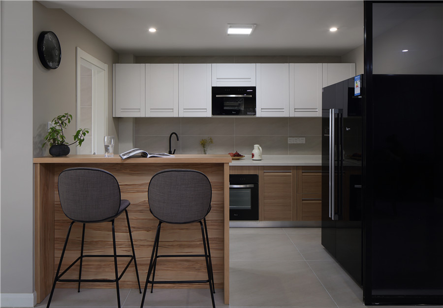 前言: 为什么需要找设计?我确信,因为我们需要梦想中的家——具备实用主义的舒适便捷,外观上带点自己的主张,不假装住在别人家,这里就是我们的游乐场。 我们认为,家是堆砌记忆的场域,是家人生活、娱乐、交流的场所。越是简单的硬装才能给每个家的独有记忆留出空间,让生活的痕迹成为每个房子独特的味道。家里的物件和记忆一样,总在慢慢添置,碗碟、书画、照片、绿植、摆件…逐步丰盈我们的生活,而硬装就是这一切的背景与大纲,越是要求简单,越是挑战高超。这里要感谢设计师给予这套房子简单的线条,高雅的色彩,合理的布局,既有工业感的冷峻,却不失家的温馨,更保障了居住的舒适。家中的角角落落,随意取景都能成为美好的摄影小品,未来的生活可以在这里恣意铺展。 中西厨的界分、吧台的设置,既解决了中式烹饪的油烟问题,也让更多的家人可以参与到美食的制作当中,厨房不再是简单的饮食操作间,而是全家的共赴餐宴的游艺场。可以随意调节的客厅座位,茶几位,既满足了全家欢聚交流的空间需求,也为家庭影院的观看提供了舒适的位置,充满了灵活多变的可能性。总之,这不是一套冷冰冰的房子,而是充满故事的家。