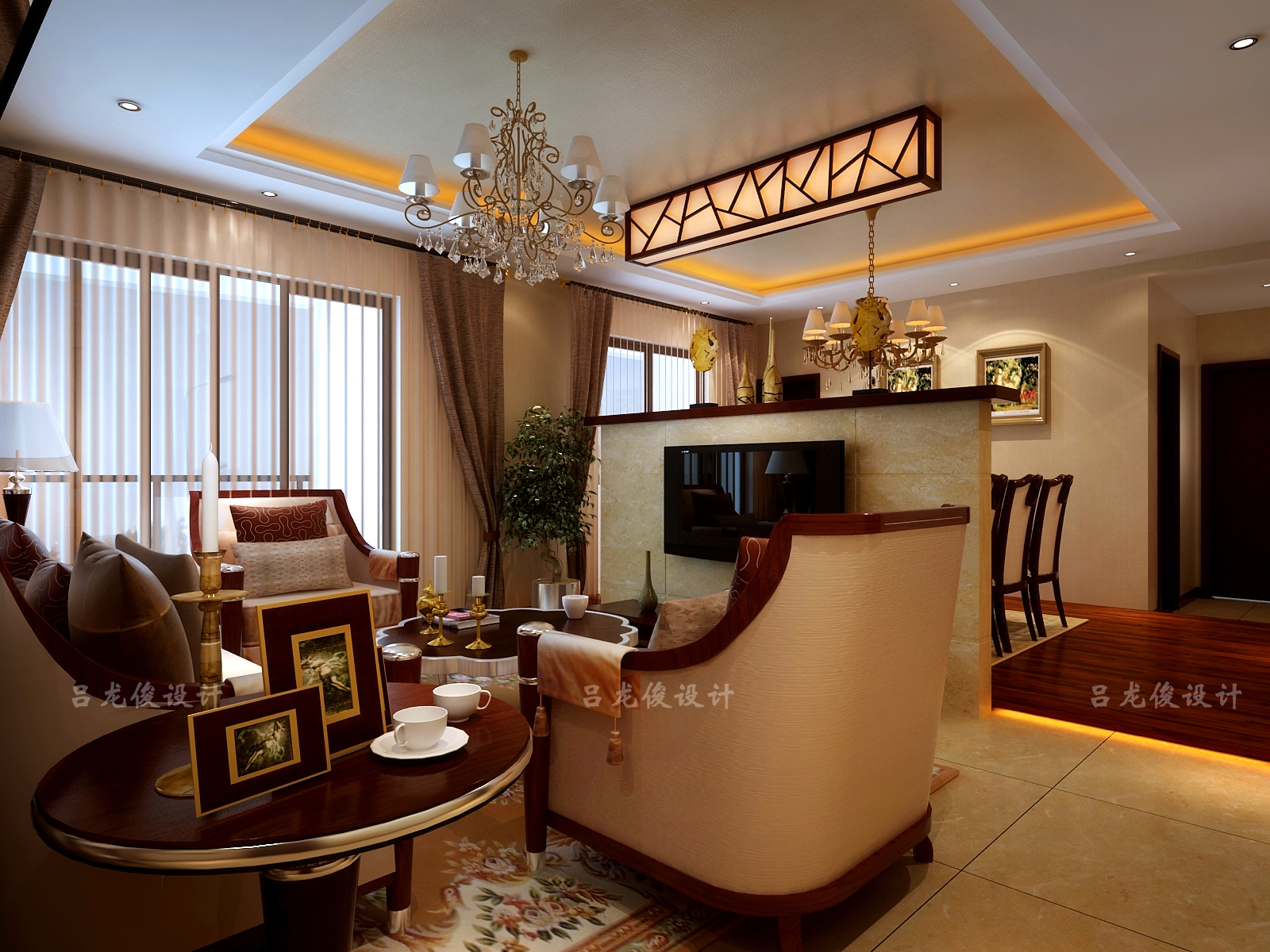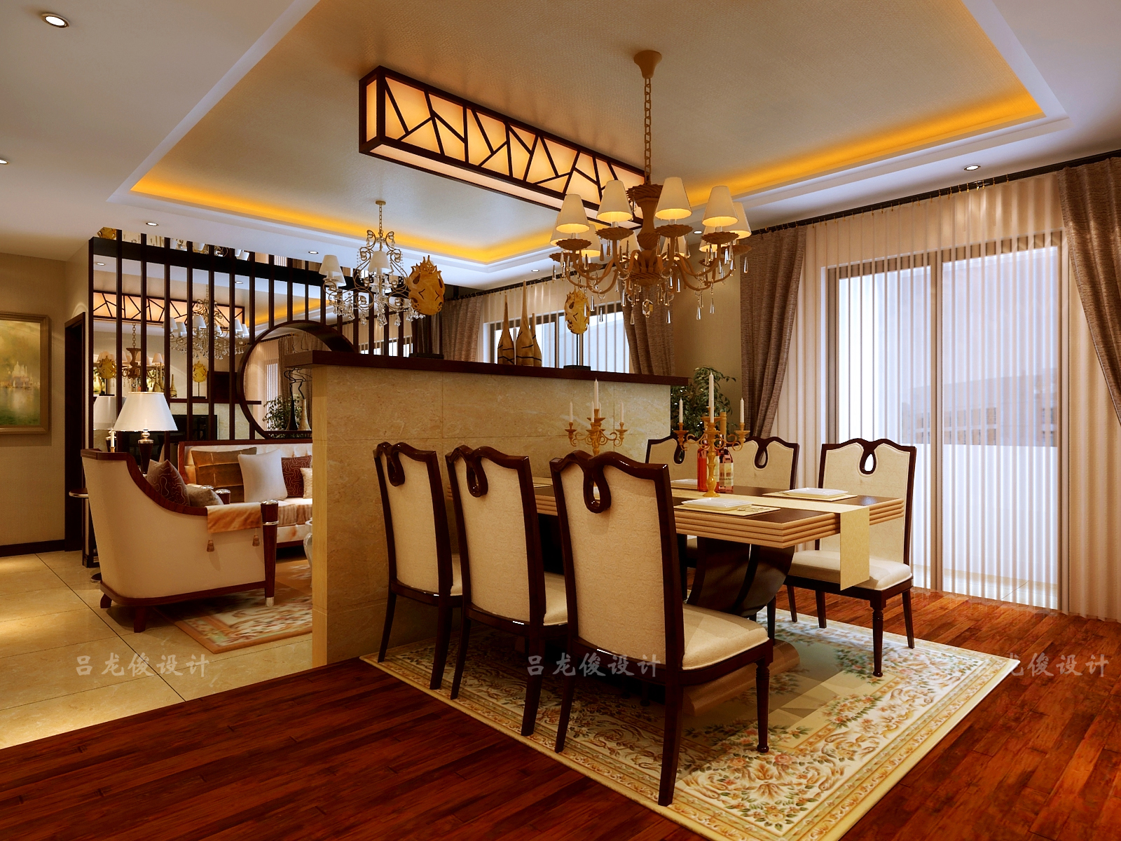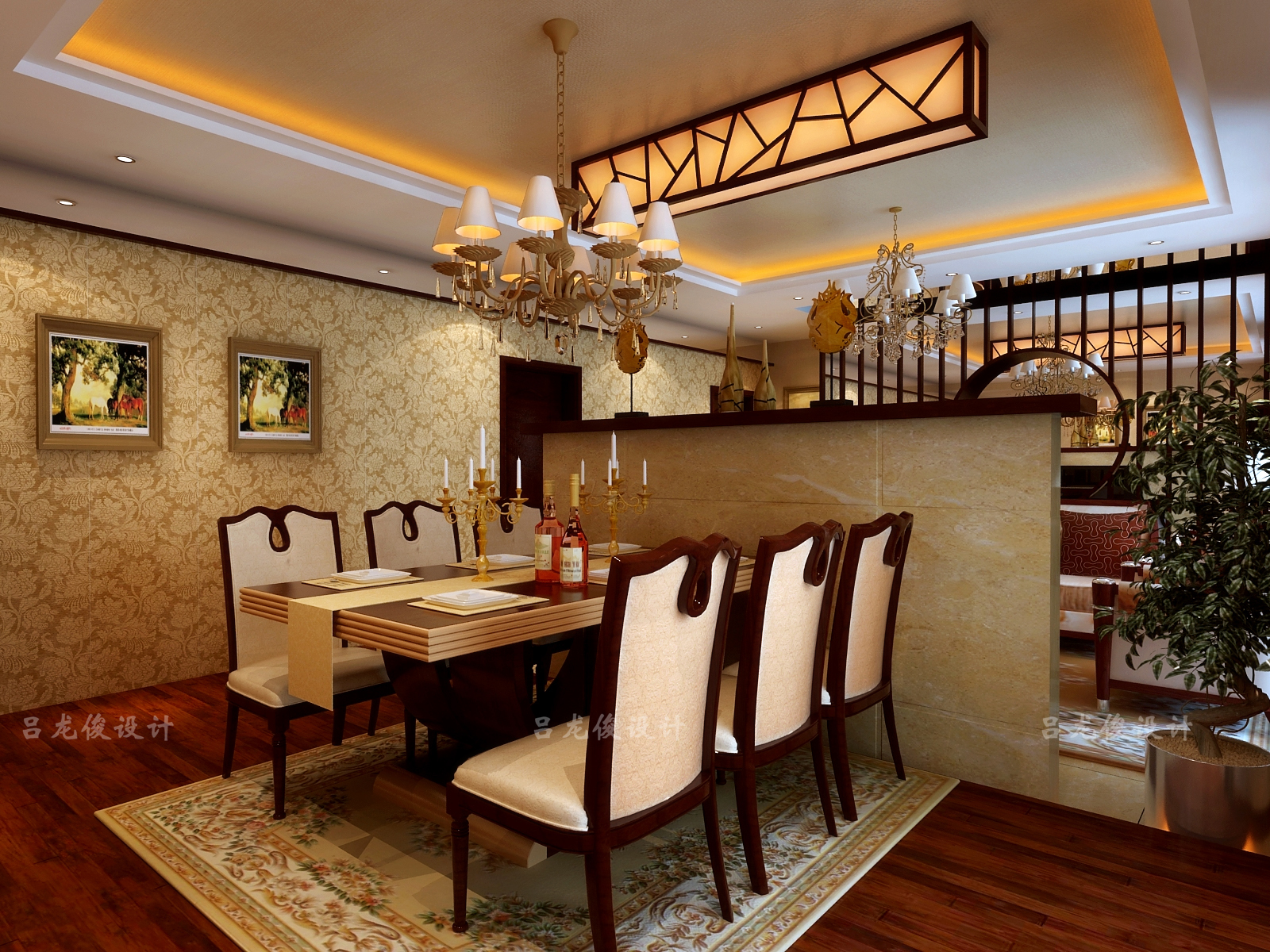 前言: 楼盘:外滩 面积112m2 设计师:吕龙俊 装修风格:新中式 工程造价:15.8万 联系QQ:243883551 tel:18081873344 设计说明:该案例作品与业主沟通交流,以中式风格装饰表现,以传统文化与现代元素结合在一起,不会像传统中式那么压抑。整体采用暧色为主以显示出温馨感,通过灯光的渲染。由于客厅空间比较通透,不能有效的区别功能区,所以利用实木装饰隔断,有效的将客餐厅空间主次分割区分,使空间更具完整性。以现代的审美需求来打造富有传统韵味的事物,让传统艺术在当今社会的合适的体现。