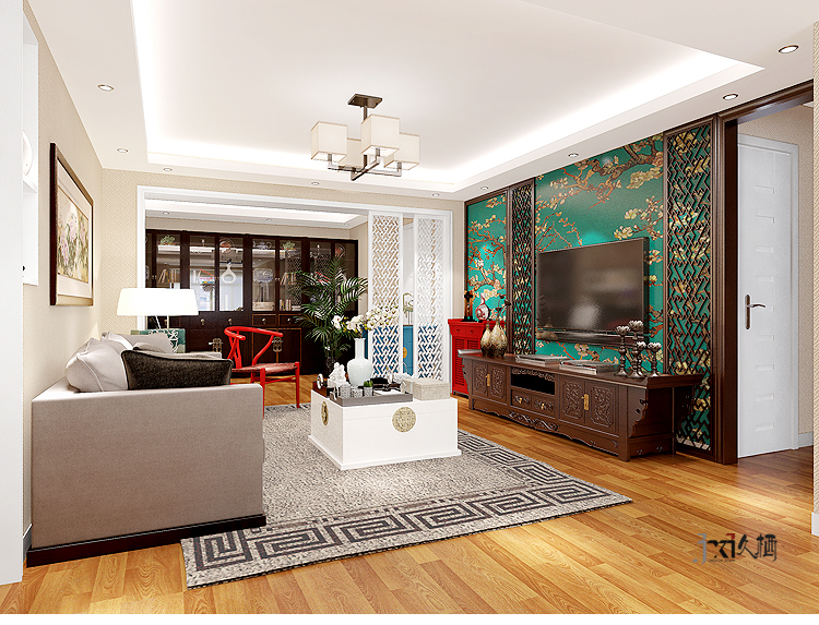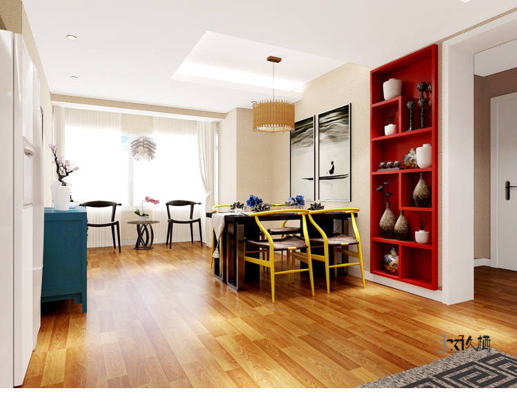 前言: 地区:北京美惠大厦 设计施工单位:久栖设计 面积:145平米 造价:12万 材料:实木复合地板、乳胶漆、板木复合家具、中密度板雕花、壁纸 户型:3室2厅2卫1厨 风格:新中式 用途:新房装修 简介: 设计师利用自己对中式传统文化的充分理解,与深情敬仰,在当代社会的背景下,演绎一种古元素与现代人审美结合而成的新中式风格。格局规划的处理上,设计师恰到好处的分化起居厅的较大空间。保留中式的方整气质,以造型雕花隔断的样式呈现的电视背景墙,配以花鸟主题壁纸,触发看客们的视觉,嗅觉,听觉等多位感官。造型直白的嵌入式博古架利用古典华贵的大红色均衡室内效果,也为就餐提供了收纳作用。虽处于喧嚣的都市之中,又恐琼楼玉宇,隐居在如此雅然天地,品味世间百态,何乐而不为呢?
