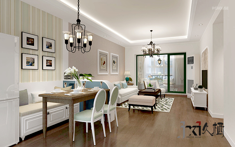 前言: 地区:北京中芯花园二期 设计施工单位:久栖设计 面积:80平米 造价:7万 材料:乳胶漆、壁纸、石膏线、仿古砖、强化复合地板、实木装饰线 户型:3室1厅1卫1厨 风格:现代美式 用途:新房装修 简介: 原本是精装房,但却满足不了业主对舒适生活的热爱与品位,所以设计师是在原有限定的硬装格局基础上进行全面装饰性的改造。利用当代人的设计手法跟材料还原偏近古典韵味的年轻人的居室风格。少量的鲜明色彩糅合,让简单的白色墙面衬托出更多样化的模样。看似轻描淡写装饰性吧台,恰好起到分隔区域与收尾的功能性。没有娇作的夸张装饰,细腻处的留白处理正符合居住者的喜好。
