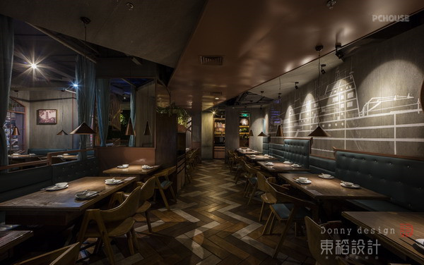 前言: 设计师利用每一寸空缺之处,增加空间的饱和度,不显局促、不失大气。在走动之中,丰富错综的隔断也成就了空间的错落感,达到移步异景的效果。 背景墙面上描绘的船政文化以及三坊七巷建筑群,既是一种历史的呈现,也可以理解为空间的装饰,让食客在满足舌尖的同时有了更丰富的知识延伸。