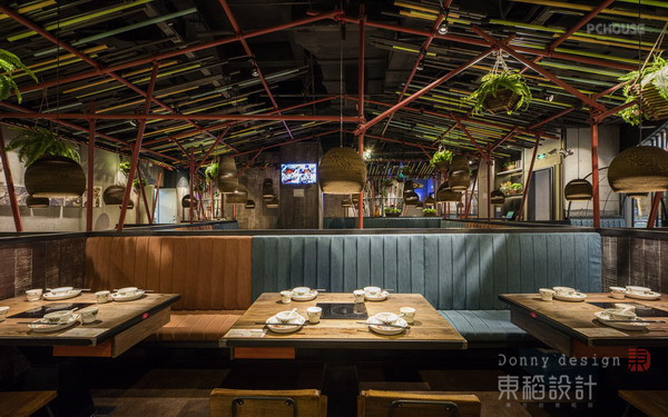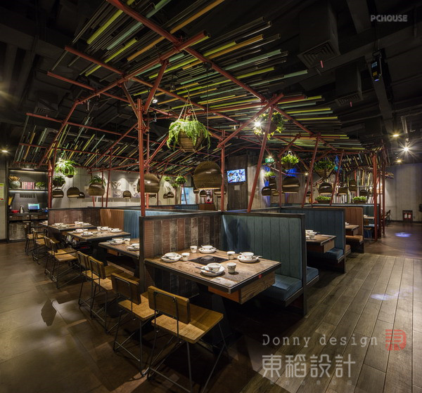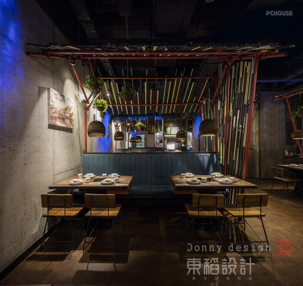 前言: 管状交错搭建的吊顶以简洁明了的方式出现时,不乏真性情;用丰富的色彩方式出现时,也不会带来繁乱。 幻化出丰富的感官享受,它们如同空间中的魔法师,流动中展现一种秩序的大气之美。 餐厅墙面上用黑白色调的三坊七巷古民居画作装饰,让空间在不绚丽、不耀眼、不强烈的环境中,产生归去来兮的淡然。