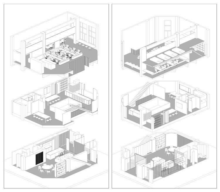 本项目是我们办公与日常生活的地方,原本是两层5.5米层高的建筑物,我们用钢结构将原来的一楼分隔成两层,二楼也增加了夹层。加建后最终是一个3层半的建筑。