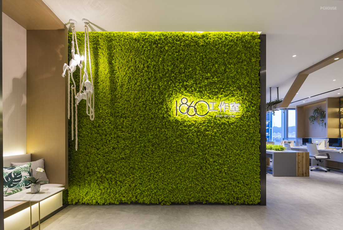 前言: 有人说:“人生的三分之一是在工作”,那么,拥有一份喜欢的工作,在舒适自在的办公环境和轻松愉悦的氛围中学习、进步,亦是一大幸事。 在1860工作室,“住着”一家新型设计公司,选址在被称为“新一代智慧综合体”的广州奥园国际中心,设计师结合其设计团队年轻、大胆、独具创意等特点,覆盖大量“绿意”,意为“希望、理想”蓬勃之地。