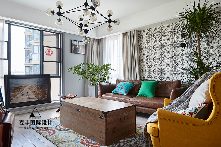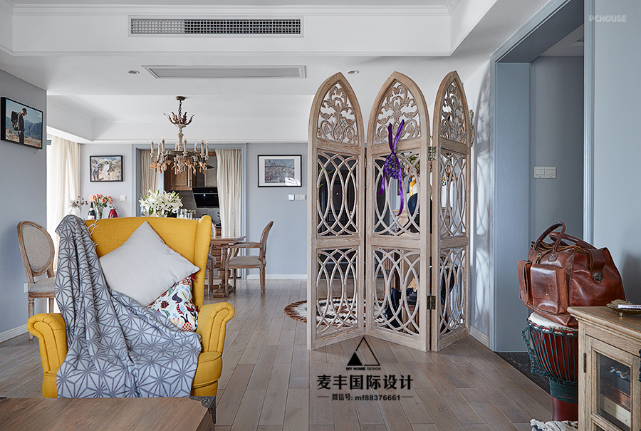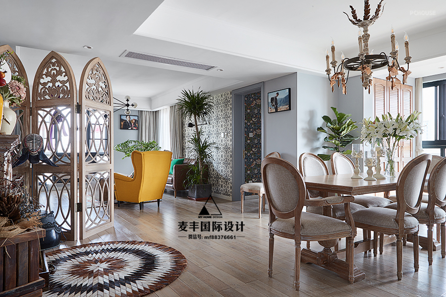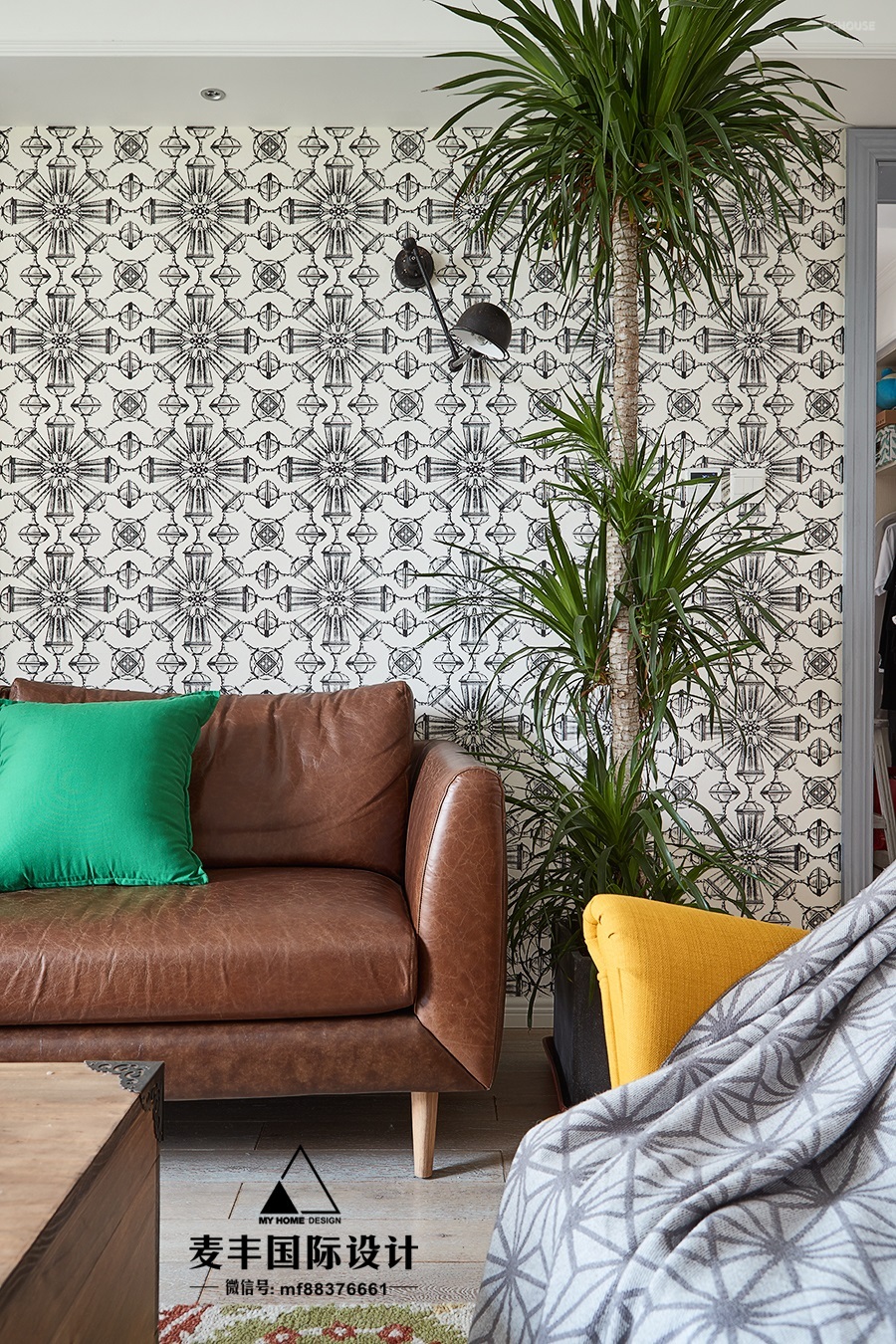 前言: 璞素 每一个空间都承载着许多,而亲情和爱情便是这之中的主旋律。 案例信息 项目名称:璞素 项目地址:杭州·善贤人家 项目面积:135㎡ 项目风格:混搭(北欧混法式) 项目户型:三室两厅 设计团队:麦丰装饰·城西设计二中心 施工单位:浙江麦丰装饰设计工程有限公司 主要用材:乳胶底、墙纸、地板 摄影师:林峰 文字编辑:Merrill-Yu 户型的优缺点 本案是一套三居室户型,南北通透,且方正。屋主是一对新婚夫妻,对户型深入分析,设计师在格局上没有做很大的变化,主要从后期软装搭配改变。屋主原先定的是波普风格,喜欢大胆的配色,但是随着设计的推进,发现波普风格目前在杭州市场配软装非常困难。设计师和屋主探讨后,决定不走固定的风格,按照随性的搭配。 客户需求 屋主要求家里硬装简单,软装颜色丰富,充满艺术气息,不拘束,不刻意。家里有一只很大的龟和一只养了七年的宠物狗需要安置。另外小夫妻俩都爱旅行,都爱买工艺品,尤其是收集国外手工包,所以希望有个衣帽间容纳他们的包。