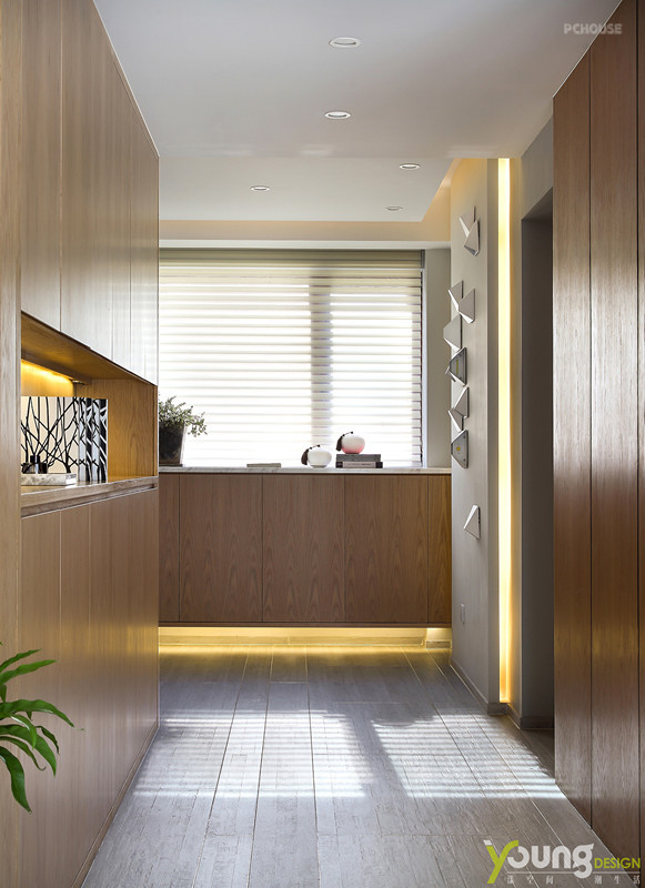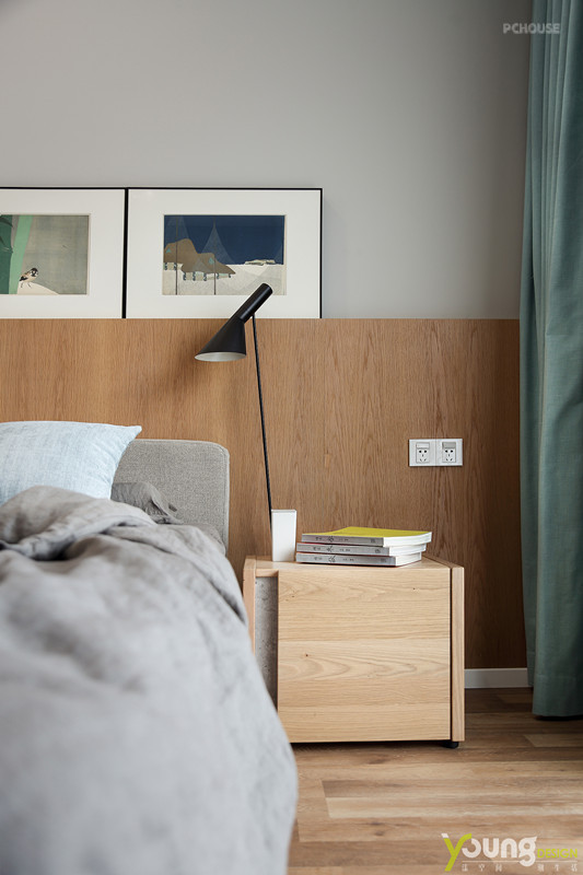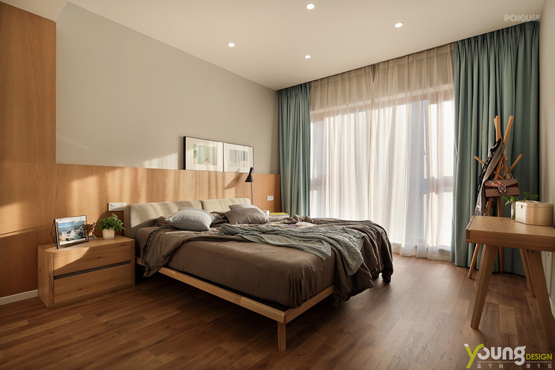 清新素雅的窗帘与配饰,小株的绿色植物,木色地板和家具的高质感,使空间中缓缓洋溢着宁静的气息。