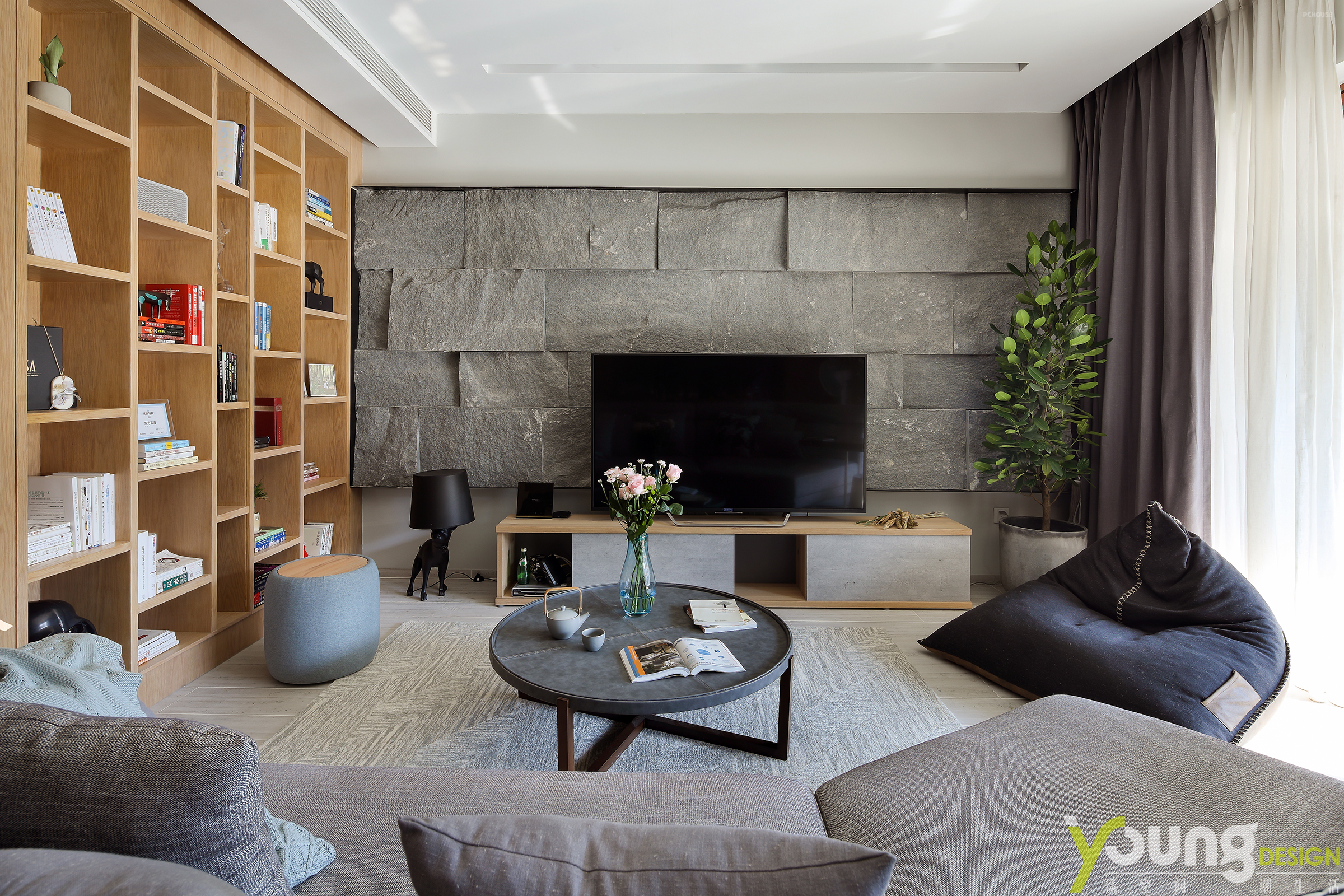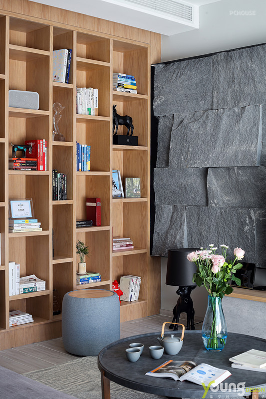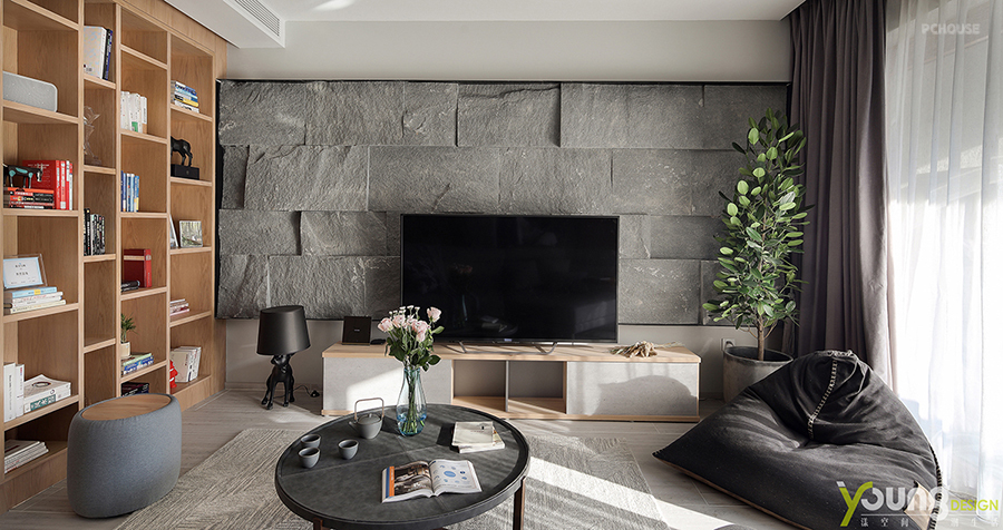 就像电视背景墙的设计,由毛石构成,参差不齐的造型给人以很强的视觉冲击感,震撼之余,“原始”一词呼之欲出。