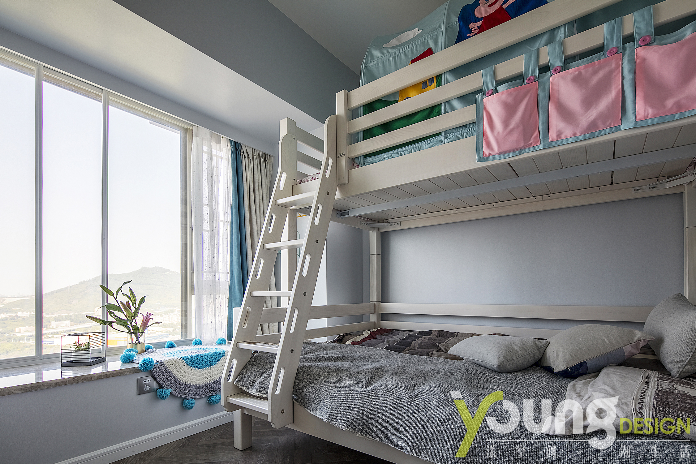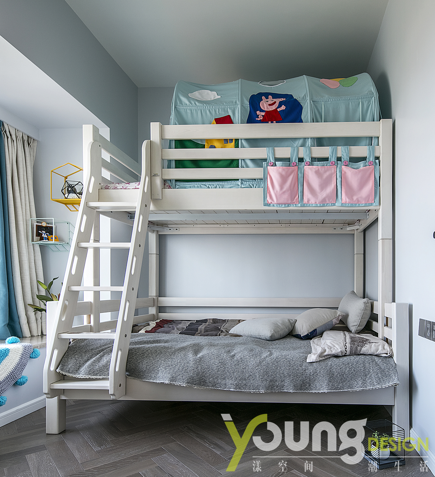 儿童房采用上下铺的设计,兼顾实用性和趣味性。