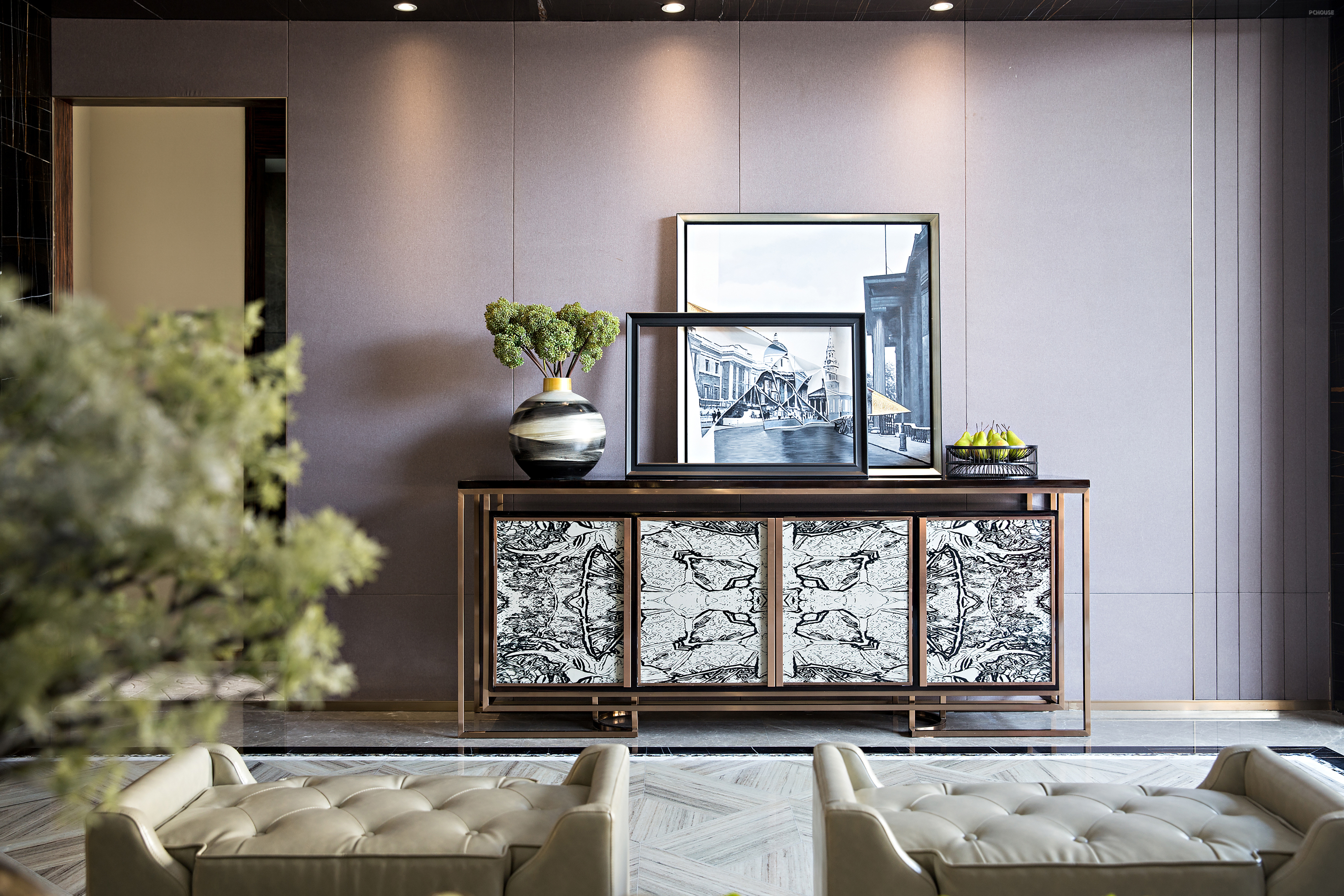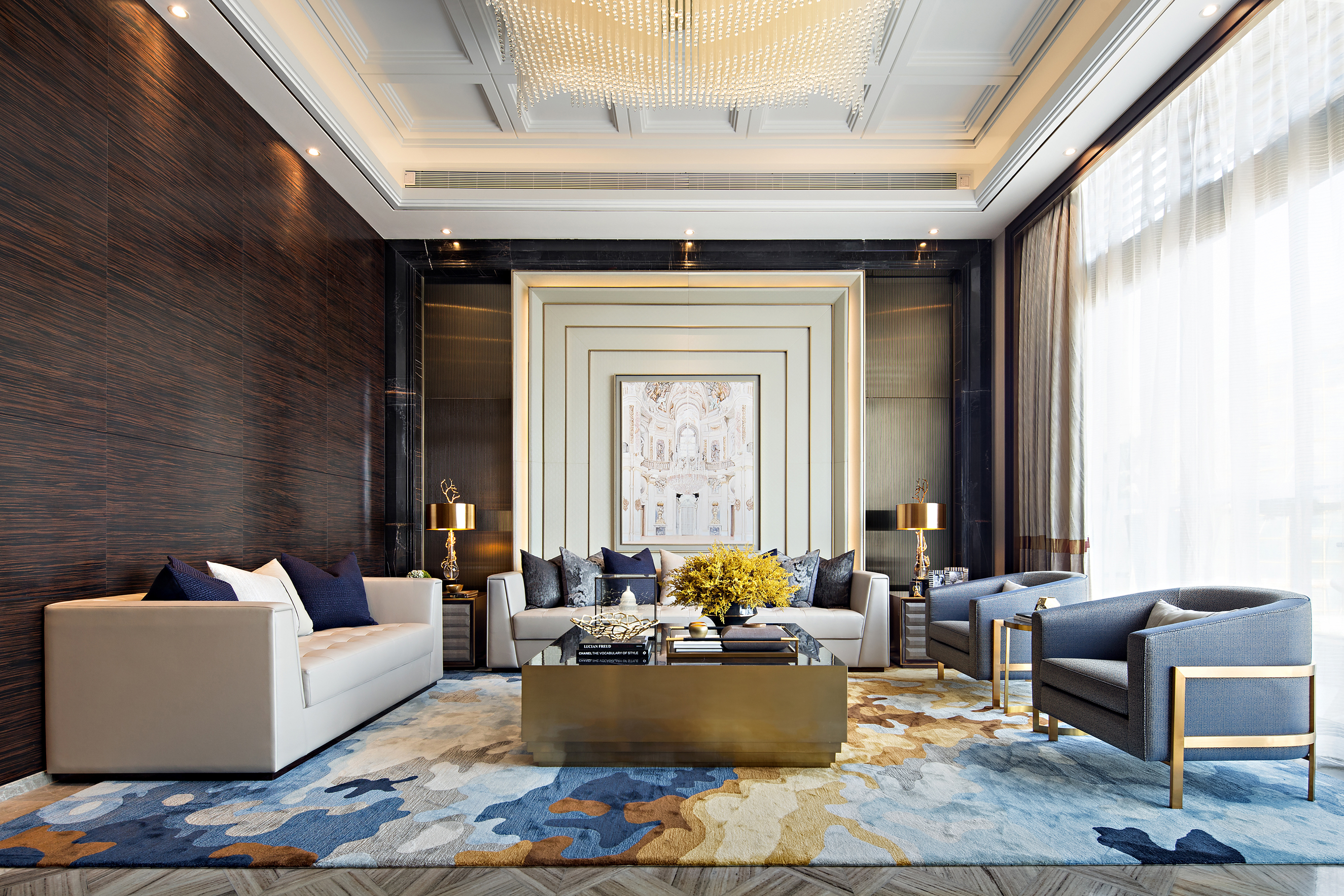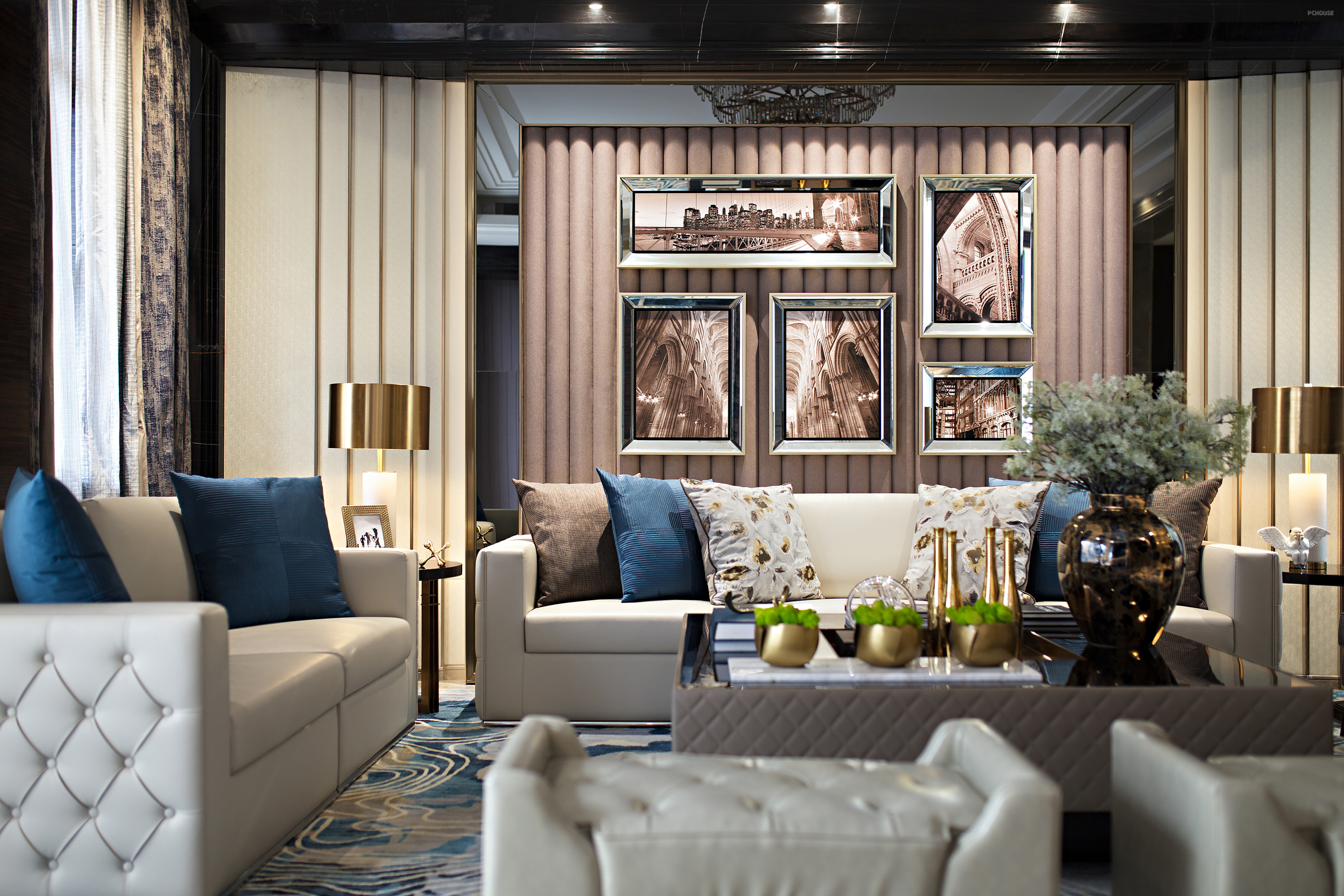 前言: 在中国18000公里的海岸上,人们临海而居,向海而生,大海延伸了他们的梦想,延续了他们的生命。海的宽广让人心生喜悦,海的温情让人放缓脚步,就连诗人海子对临海而居的向往,也是那么质朴、单纯而幸福:“我有一所房子,面朝大海,春暖花开。 本案坐落在广东省汕头市濠江区,拥有蜿蜒绵长的4.5公里海岸线。其样板间设计契合项目区位的优势,借用海滨城市的人文、景色、建筑三者特有的元素,以港式奢华的设计为基调,石材、不锈钢、特殊玻璃、木材、扪皮布等材质灵活贯穿其中,搭配睿智冷静的蓝、自然华贵的金以及中性的色调在空间中平衡出沉稳而不失高贵的特质,体现新时代对生活品质的追求,诠释海岸边幸福温暖的时光。