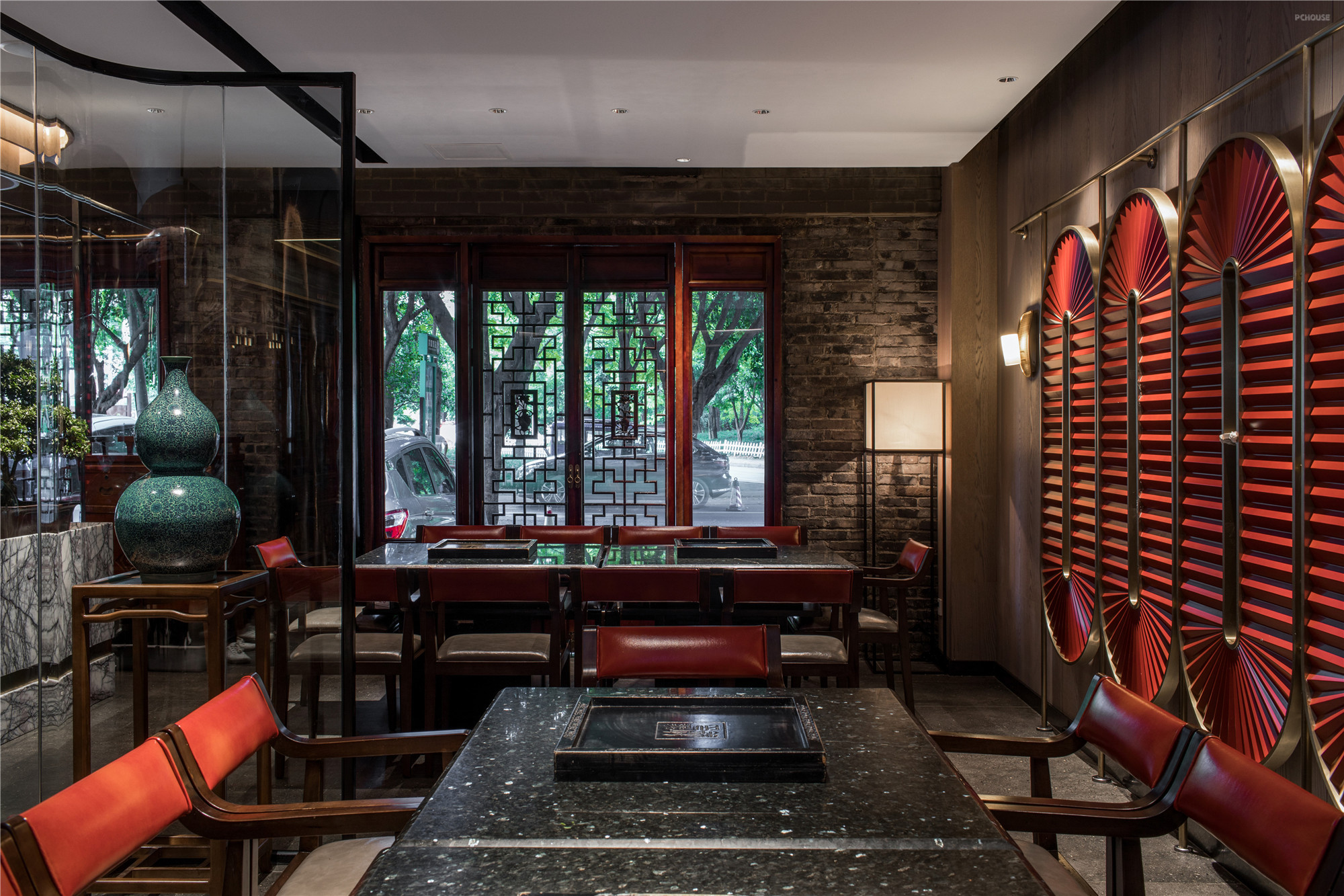 前言: 项目名称|Name: 锦城印象彩虹店 项目地址|Location: 中国成都|Chengdu,China 武侯祠大街19号|NO.19 WuHouCi Road 项目面积|Area: 980㎡ 主案设计师|Interior Design: 沈嘉伟|JiaWei Shen 执行设计师|Executive Design: 马宏佳|HongJia Ma 唐勇|Yong Tang 主材|Main Material: 木饰面、做旧铜片拼青砖、金属面板、石材、乳胶漆 成都火锅历史悠久,素有“三日不吃、魂差一缕”的说法。在百度地图上输入“火锅”二字,显示成都共有10688家火锅店,此次集嘉设计接到的设计委托是成都唯一入选“黑珍珠餐厅指南”的川味火锅餐厅--锦城印象火锅彩虹店。 锦城印象彩虹店,位于成都耍都彩虹桥头,紧靠锦里,从早11点到凌晨3点每日的食客络绎不绝,提起锦城印象火锅,成都人会把它称之为“成都火锅的名片”,专注于为食客呈现地地道道的成都老火锅。 锦城印象彩虹店是一座独栋老建筑,大厅设置了水景装置,顶面采用金属波纹面板,提升了“年轻化”的新潮感。 老建筑的设计重装,层高矮是一大痛点,设计师做了布局优化增加隔断、调整顶面关系、灯光处理,使动线清晰 新旧结合的平衡是考虑的重点,既要保留空间辨识度,又要加入新元素。保留了青砖、中式窗花的原始设计;新增了金属隔断与红色屏风,摒弃了传统火锅的符号但又保留了“红”的基调。 锦城印象彩虹店的二楼,分为阳台外场区、用餐内厅区与私密包房区。与阳台相连的用餐内厅采用了大片的落地窗,增加室内采光并自然衔接室内外空间,让空间在视觉上得以延伸,更加宽敞舒适。二楼的右边空间设置了独立包房,包房内的设计风格保留了较多的老成都火锅的文化韵味。 锦城印象已重装开业,通过大众点评的食客评价,皆能看到对于锦城印象彩虹店新设计的喜爱,也吸引了更多年轻食客的前往。