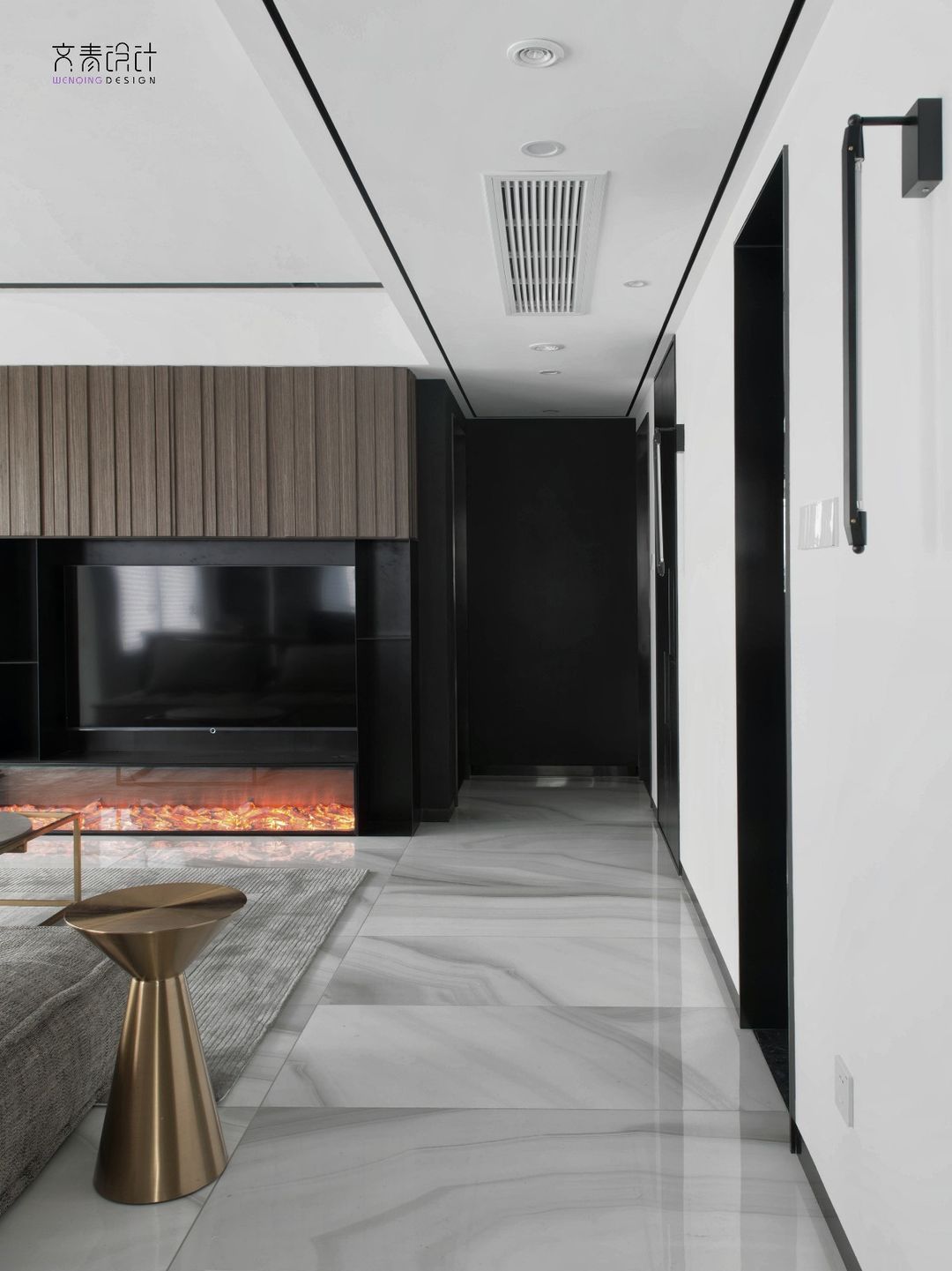 设计师在过道吊顶上增加了两条很具有空间引伸感的细线。