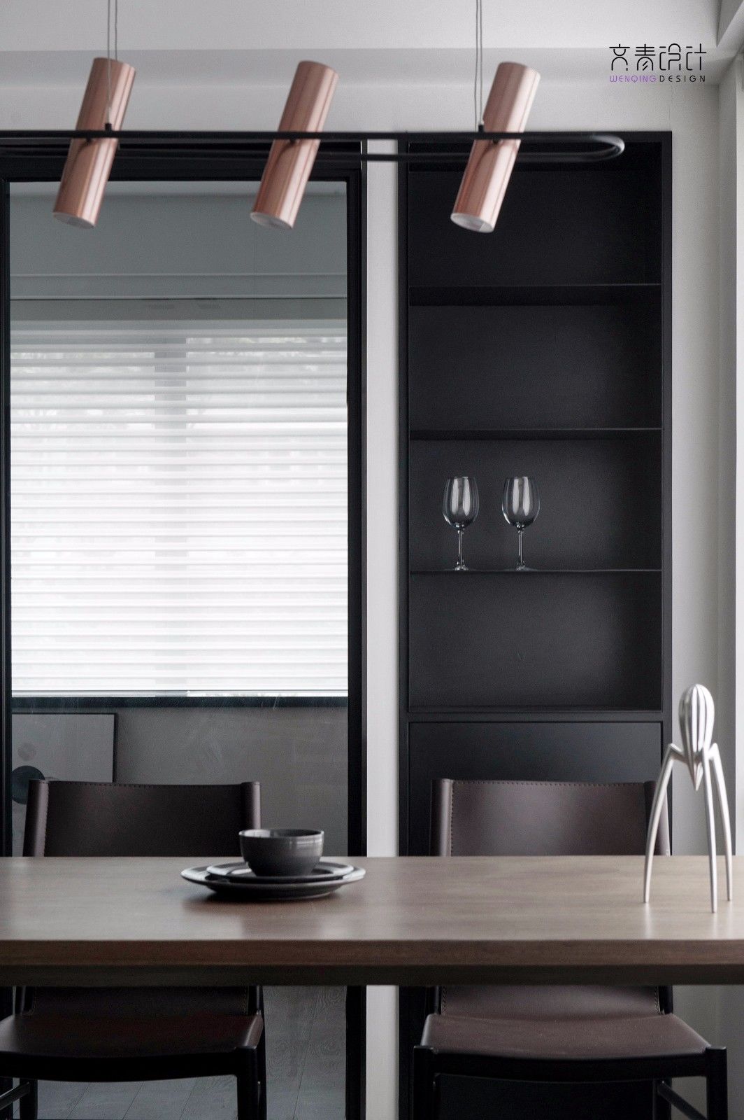黑白基调的空间,部分灯具用上玫瑰金的配色,往纯粹的空间里添了点轻奢。