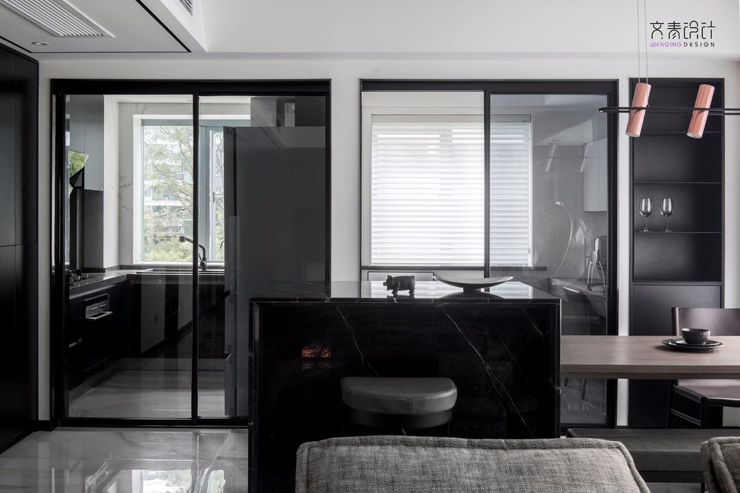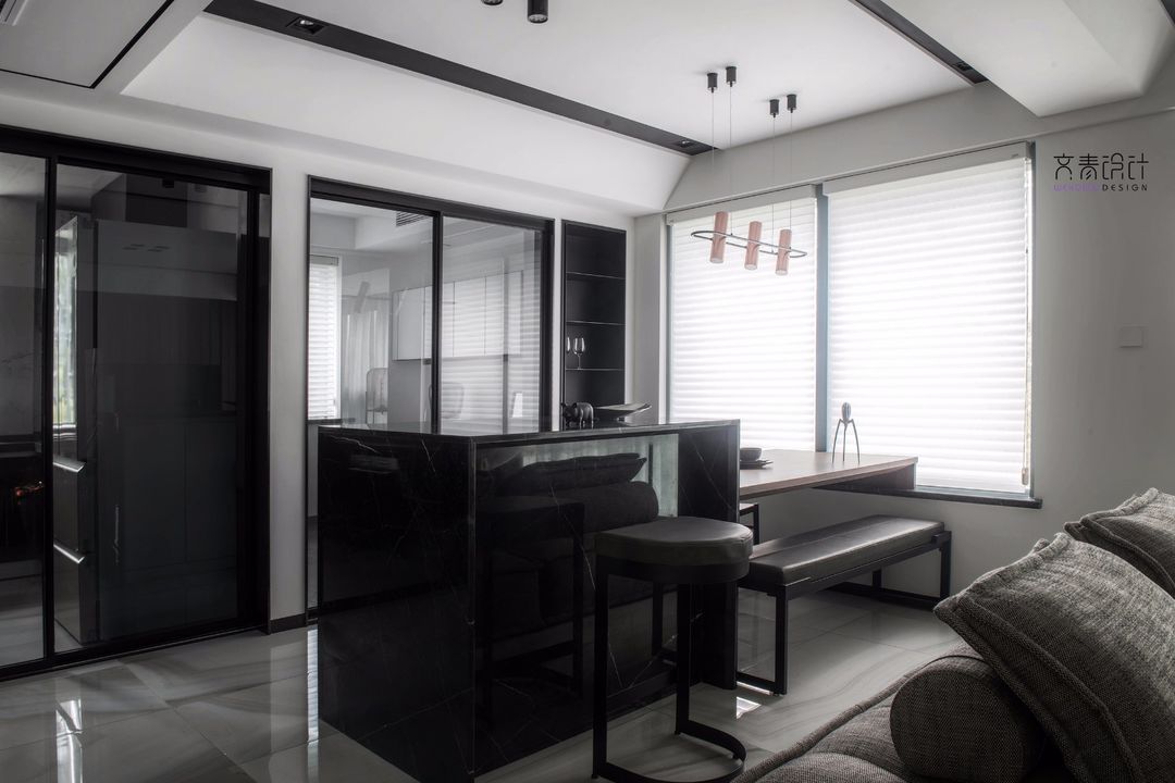 两人的世界对生活情调的追求,在吧台区得到很好地得到体现。吧台除了分出厨房部分功能之外,其正对玄关口的位置也能成为进户外出时常用物品的置物台。