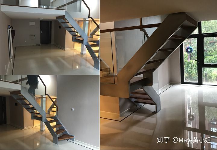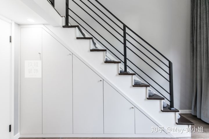 ▲楼梯下方空间合理利用,设计暗藏空间,可以存放日常杂物,与扶手踏板搭配出极简风格。