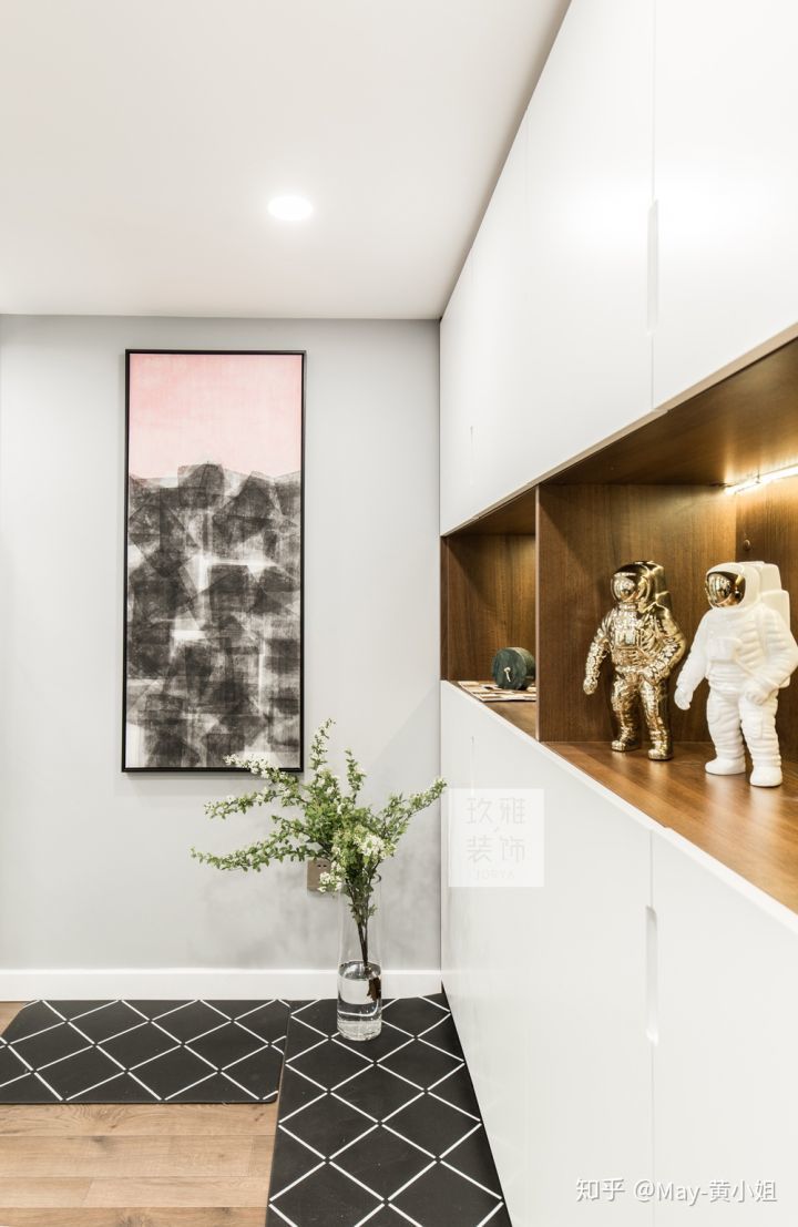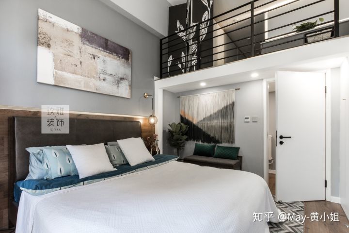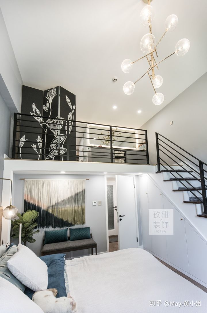 ▲楼上衣帽柜靠近栏杆一侧选择了屏风遮挡,目的就是为了阻挡衣柜侧板,从这个角度看过去不至于是一片白墙,优化视觉效果。