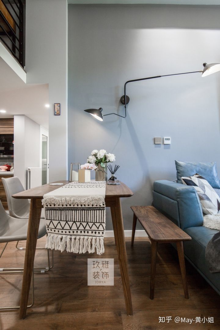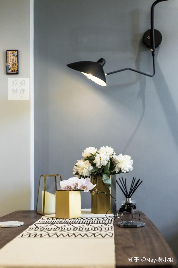 ▲客餐厅照明选择双支架灯光,灯头可以自由调控,上下左右旋转。不开主灯时,可以用做落地灯为客厅提供照明光源。餐厅用餐人数较多的时候,可以将灯光拧在餐厅一侧,成为两个餐厅灯,提供充足的照明。