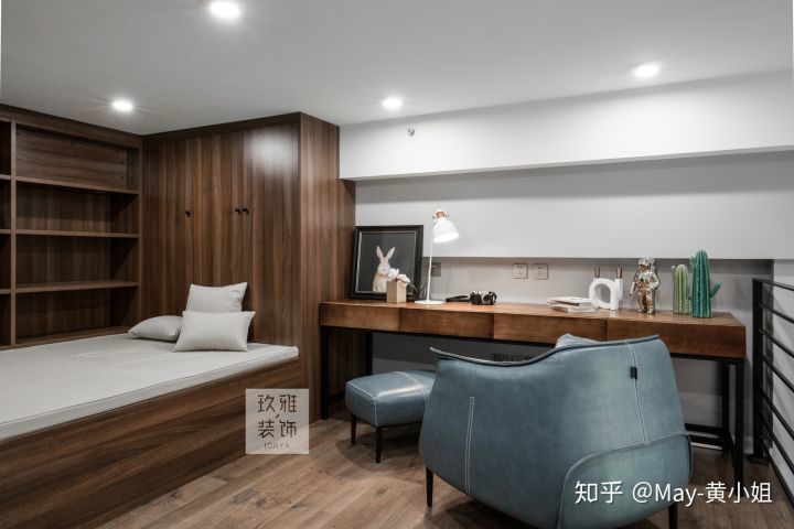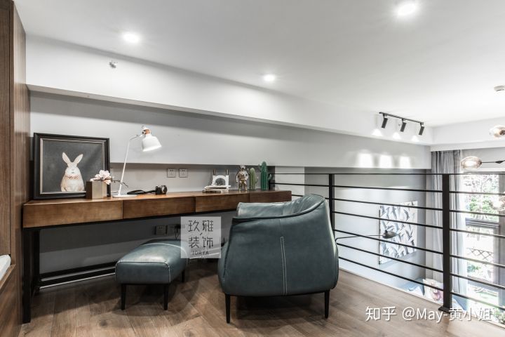 ▲工作学习区抛弃了传统的办公椅,设计师为业主选择了舒适度较高的带有脚踏的单体沙发。业主在读书学习以及工作的时候,可以处于一个舒适放松的状态,区别于在公司的办公环境。