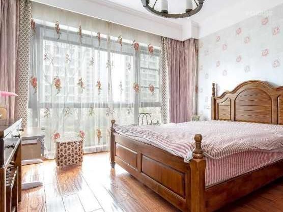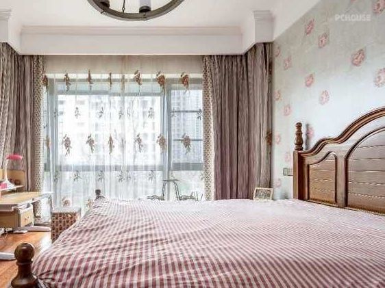 浅色壁纸与深色系的家具相互衬托相互增色,既不显张扬,又达到现代时尚化的设计理念。一深一浅、对立统一,体现出美式装修风格的自由与随意。下班回家躺在这样的卧室休息是何等的放松与惬意,所有的工作烦恼都抛到九霄云外。
