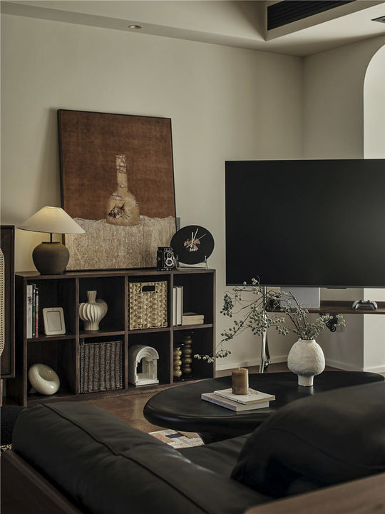 "人生是一场旅行,我们经历了几次轮回,才换来这次旅程,而这个旅程很短,所有我们不妨大胆一些。"不妨大胆一些~客厅墙面的颜色也是很大胆的尝试,落地效果却超级棒,并不会显得很艳丽,反而有种神秘感。