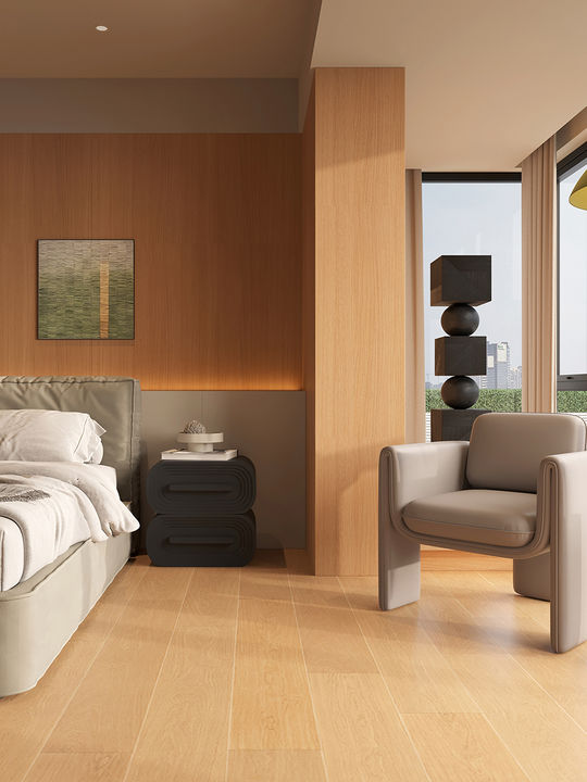 飘窗处围裹的木饰面自然温润,营造出亲切而舒适的氛围。