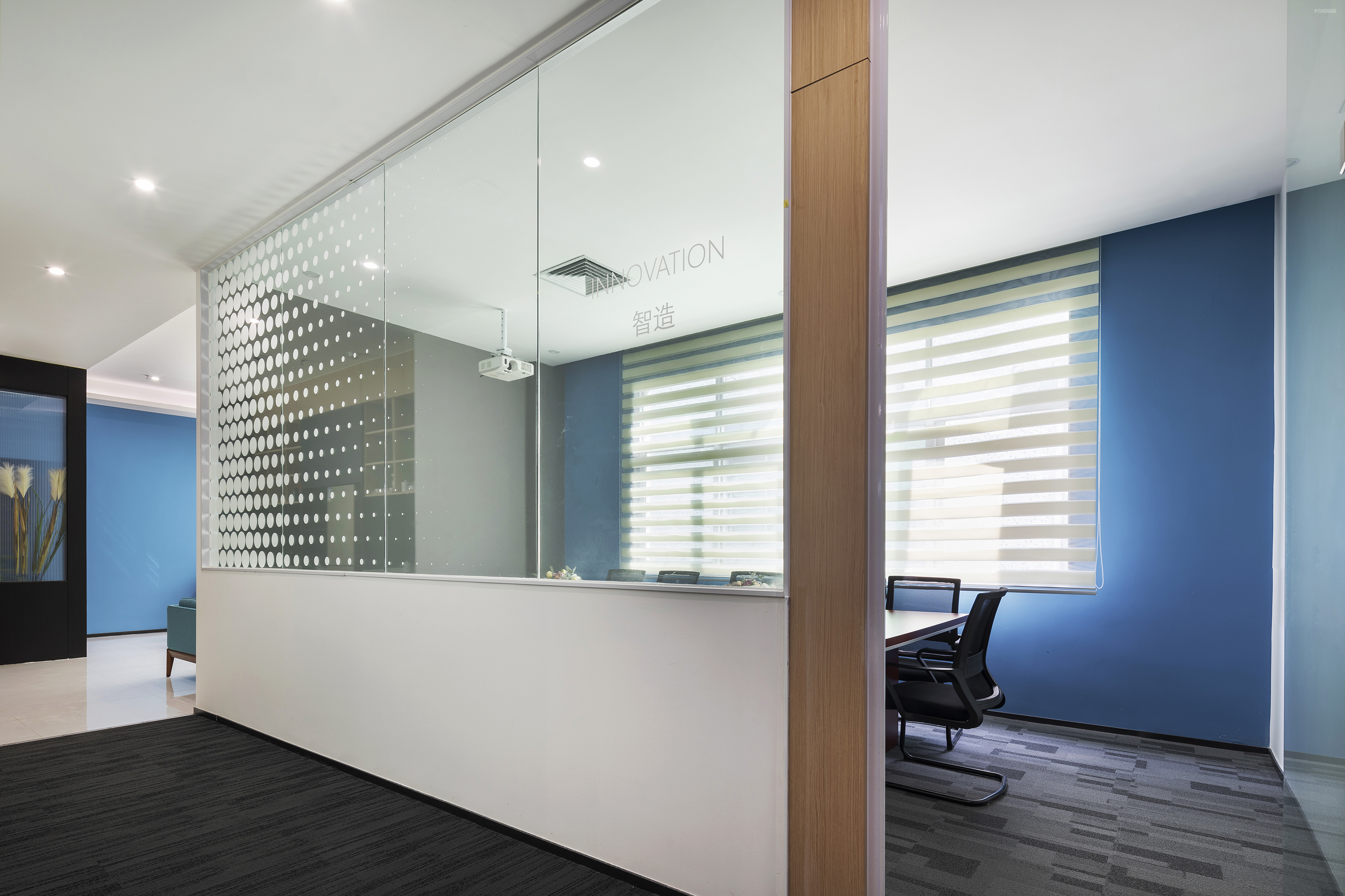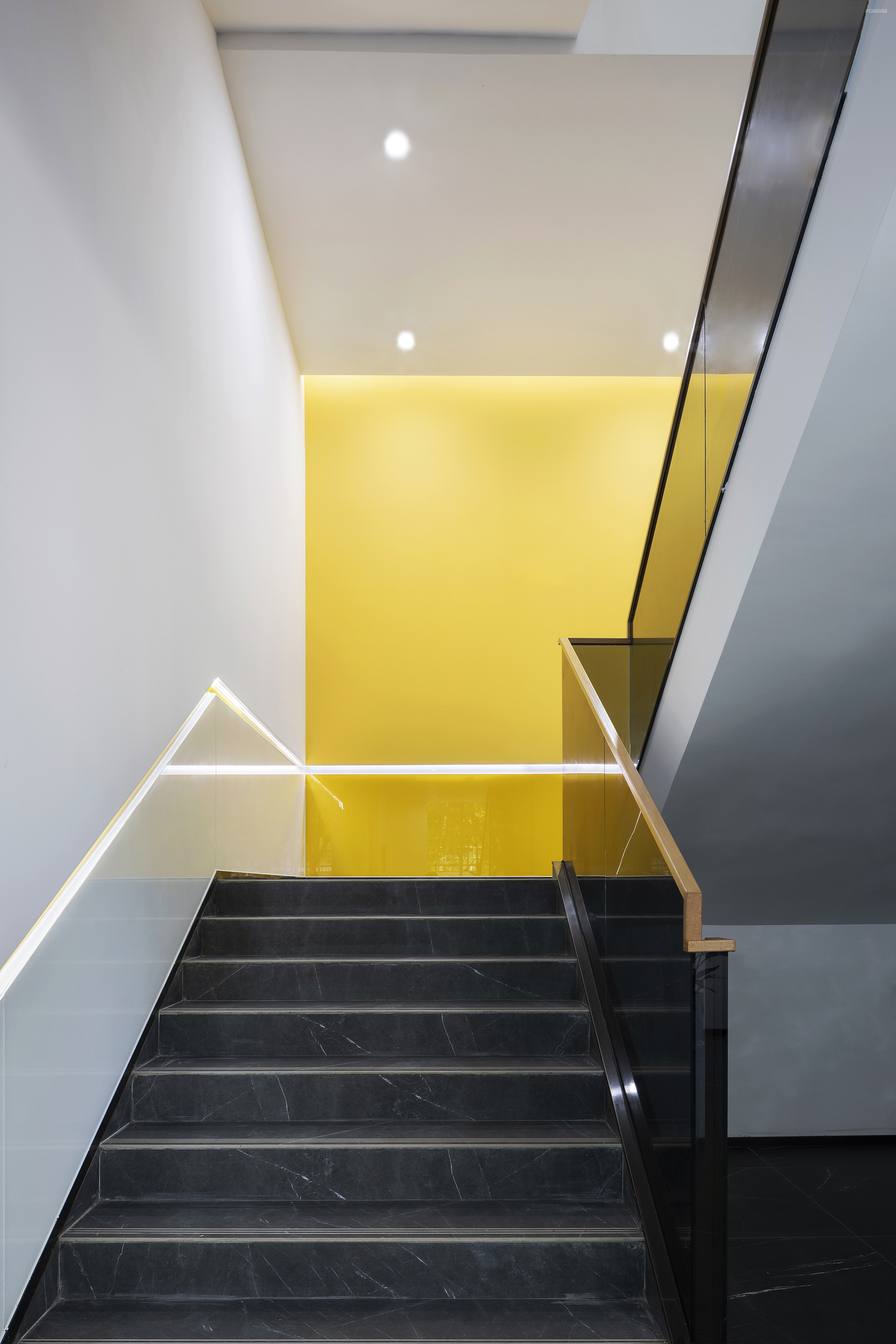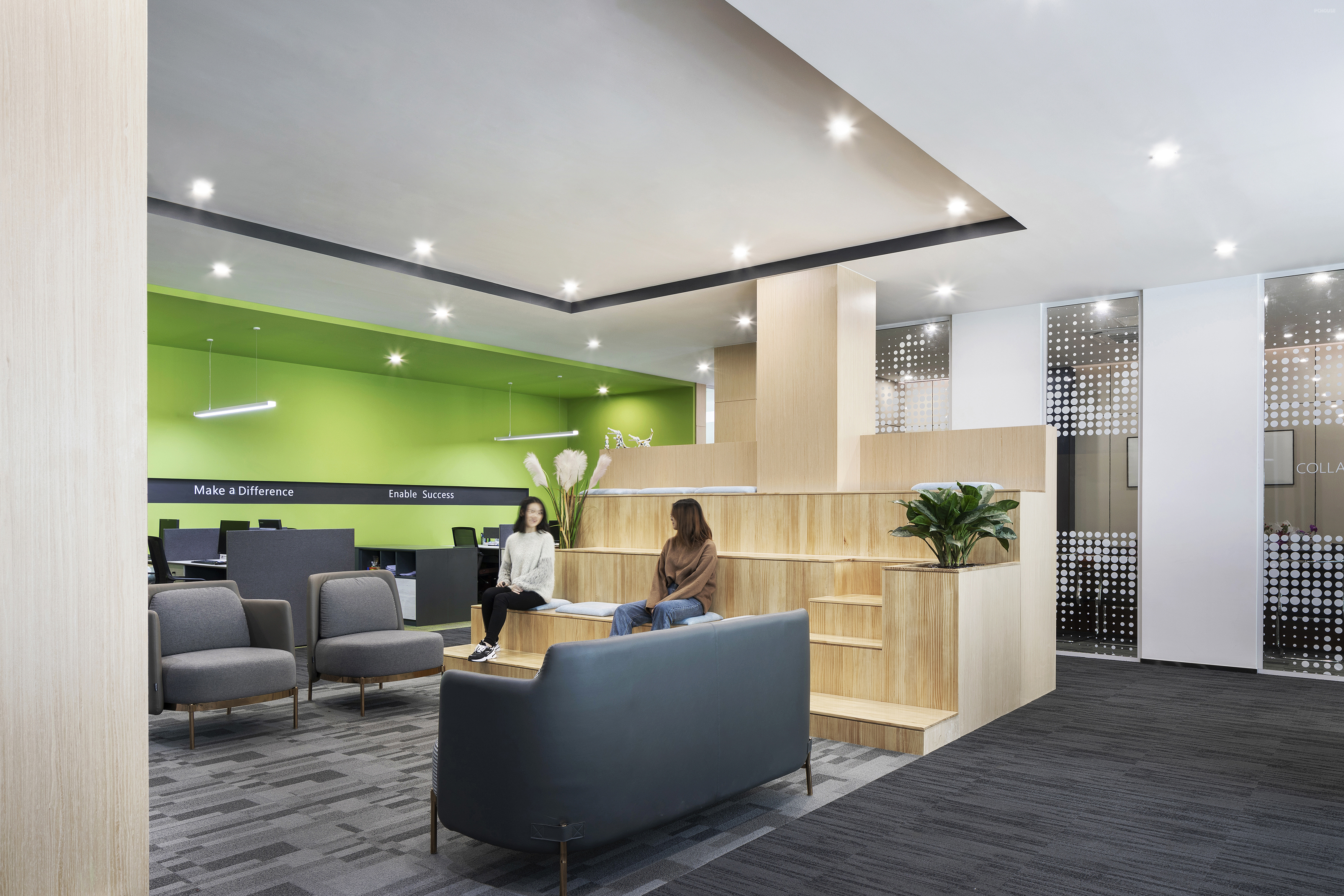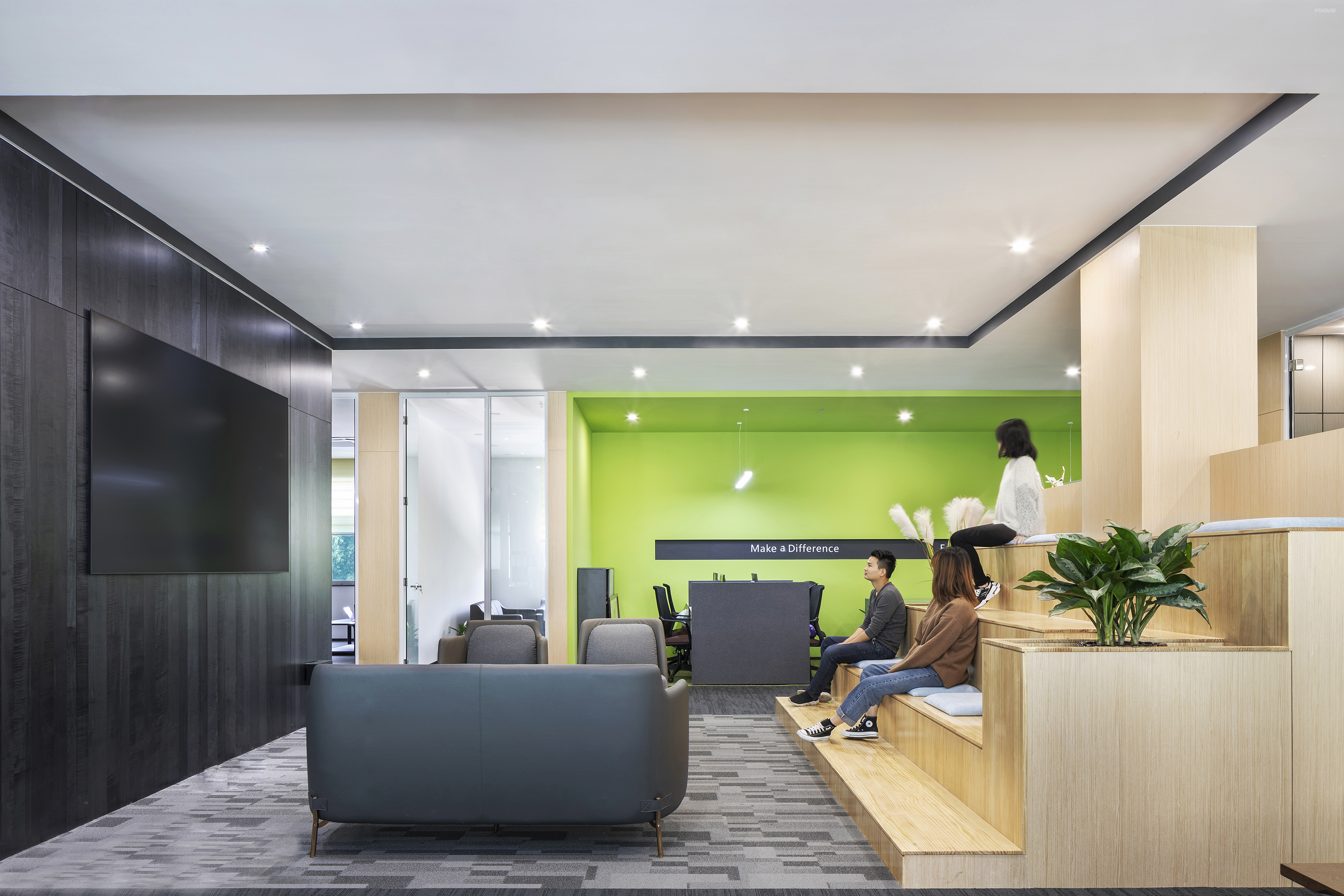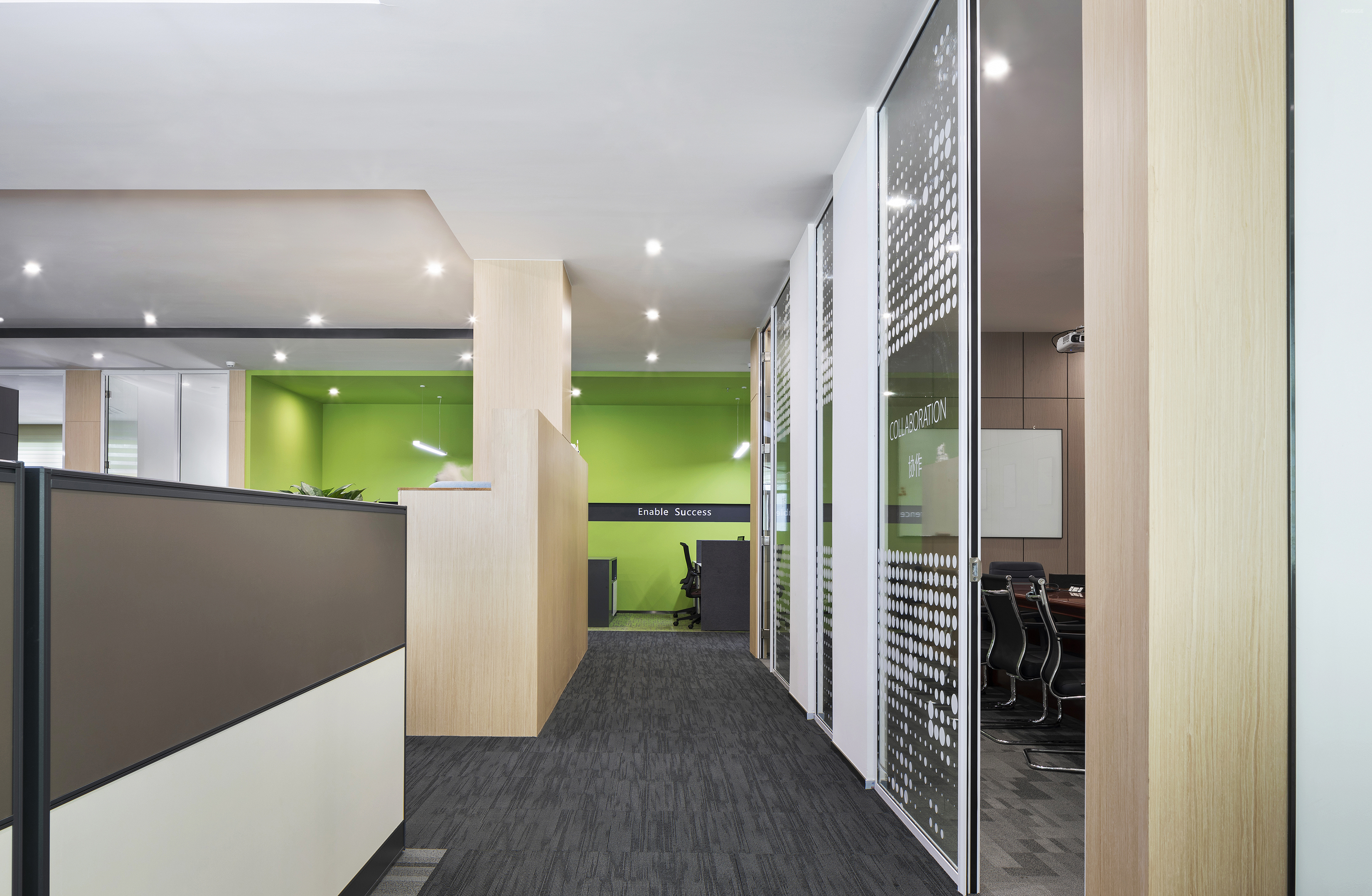 前言: 设计公司:深圳凯派装饰工程有限公司 位 置:中国/深圳 材 料:饰面板 玻璃 涂料 人造石 地毯 标 签:深圳 室内设计 分 类:商业建筑 厂房改造 本案为厂房改造空间,位于深圳光明。 项目为精密仪器制作的办公空间,因公司在美国有工作的交流合作,所以对于办公空间的元素和空间的界定,甲方想沿用国外办公空间的风格,根据甲方提供的资料,我们的主创设计师结合空间本质关系与情感,理性与感性;碰撞出了克制下的美学与空间对话 大厅前台,设计师大胆的采用黑色饰面穿插整个白色空间,又以局部的木饰面盒子的形式置入,让整个空间严谨稳重,且不显压抑。 站在办公室入口,你会看到我们产品展示的“橙色小盒子"。顺着过道的视线,绿色小空间构建的,感官上的视觉冲击是不是让你有想再多走几步,了解更里面空间是的冲动。 站在过道看向入口方向,设计师用绿色构建空间感官和视觉冲击,利用块面的穿插与排列,营造出了时尚、轻松的空间氛围。在清新的色调中,有没有让你的工作节奏得到缓和,工作压力得到分解呢。 产品发布区不仅是季度分析比对,新产品前期投入、研发生产、发布使用;也是公司团建,交流的发言的区域。设计师在空间置入的时候把产品发布区设立在离入口比较近的位置,不仅交通流线开放,而且把这个置入的区域作为一个分割点,完美的分割了两个大区域。 整个空间设计师用地面材质划分了平面的区域。天花的设计,设计师更是推陈出新,天花的看似简单的裸顶喷色,仔细看有没有发现灯的出光方式很有“心机”。因为考虑到办公室的自然采光非常的的充足,间接照明的方式会更加适合这个办公区域的照明。所以灯的照射不是直接照到桌面,而是用反射的原理把灯光反射到桌面。