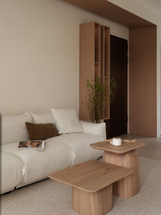 前言: 禾潢装饰是一家以强调优质工艺及上乘品质为核心的室内外装潢公司,同时也是一家专业制作木饰面板的生产厂家。禾潢装饰12月的广州设计周上带着全新产品系列低调亮相。禾潢装饰提倡打破风格界限,展厅的设计上,明团设计团队以如何在空间里传达出禾潢的核心理念为出发点,精心设置出三个不同的功能区间。更希望表达禾潢独到的理念以及审美,从而与用户进行对话。 处于第一位置传达品牌理念及承担着吸引参观者注意力的是展厅入口的外立面,我们将木头里面的“文化”、木头外面的“技艺”匠心贯穿始终,其材质细节处理取自自然之和谐,涌动着生命灵气的木质,通过线向构成令空间张弛有度,彰显力量与秩序,引起观者的兴趣与探索。当一块普通的木头遇到了能看懂它的匠人,变能赋予木头独特而优雅的气质,展示区里面的家具陈列通过专业的手艺和创造力,把普通的木头变得不简单,细致的质感,精湛的工艺确保每一件禾潢的作品都成为足以收藏的艺术珍品。在空间中结合造型、灯光、家具、展现出禾潢的匠人气质也是我们设计思考的主旨。灯光的布阵灵感来源于探索空间秩序和几何比例的设计理念,通过灯饰的交错布阵,创造出充满情绪的层次感,最终塑造让人铭记的空间。