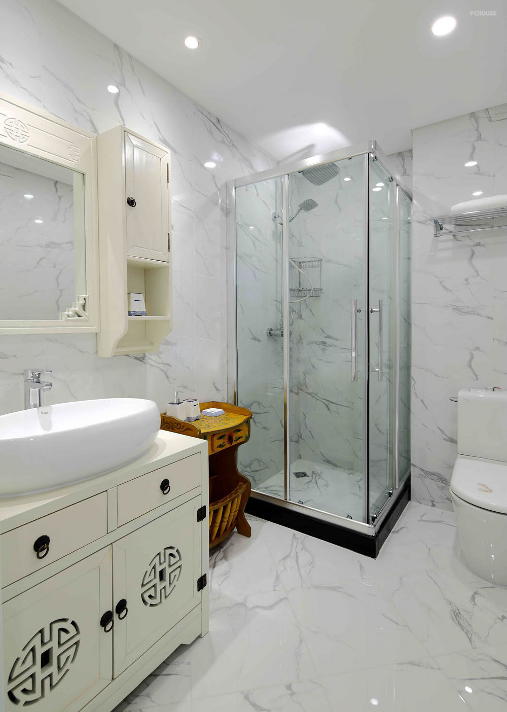 仿山水纹瓷砖简洁明了,让暗卫空间通透明亮。#瓷砖#洗手盆