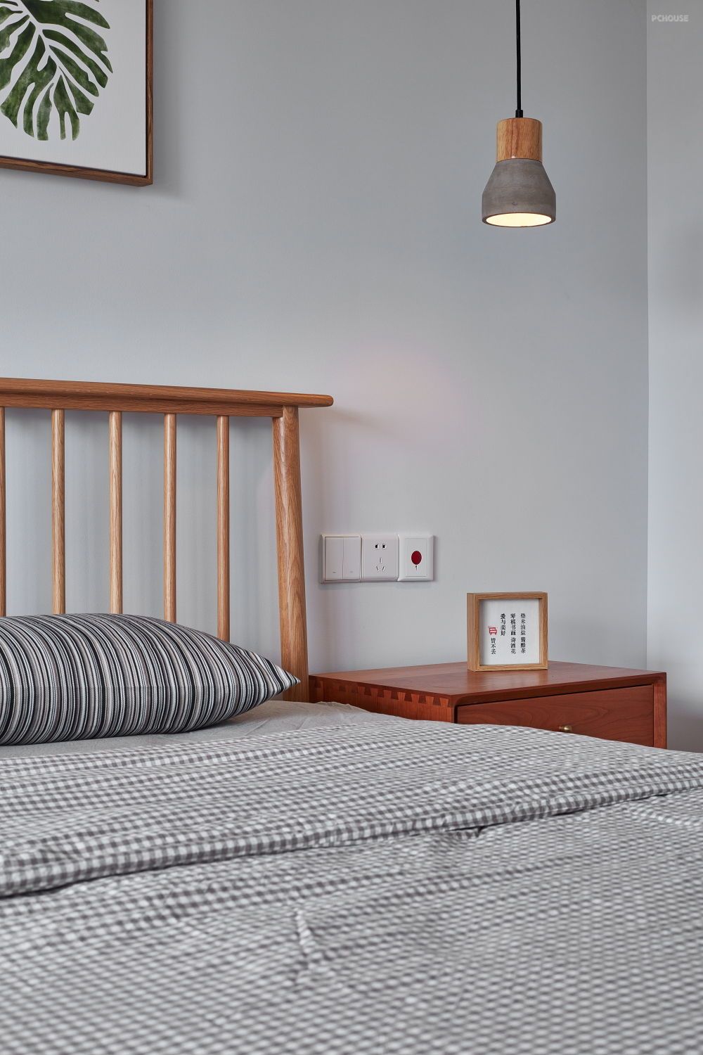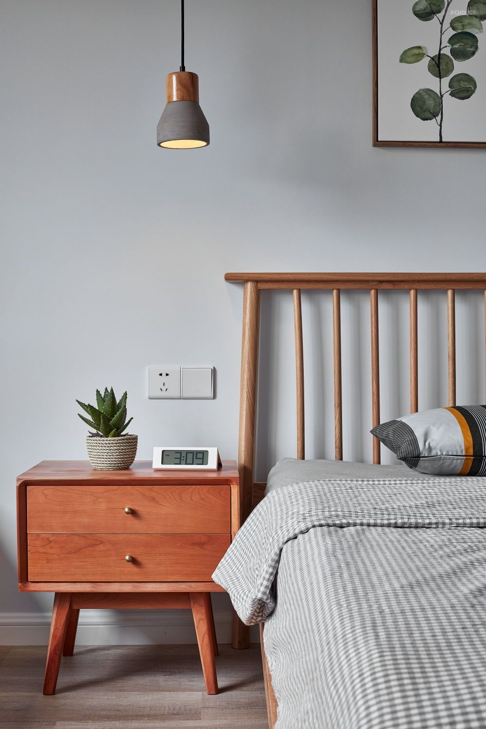 水泥灯、木框画、原木柜,最灵动的设计细节呈现,总能回归生活最初的追求与美好。 #卧室 #床头