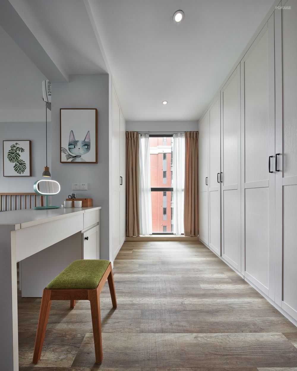 设计师赋予了这个89㎡的房子一份宁静的北欧风情,线条简练、色彩明快,注重功能且贴近生活,清新素简如晴天一缕晨光,亦如雨天一湖涟漪。
