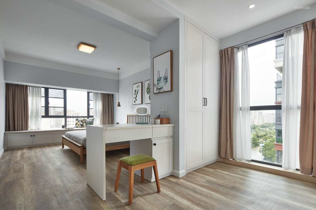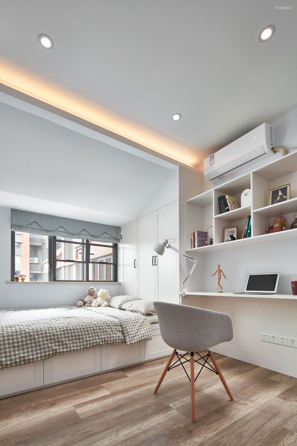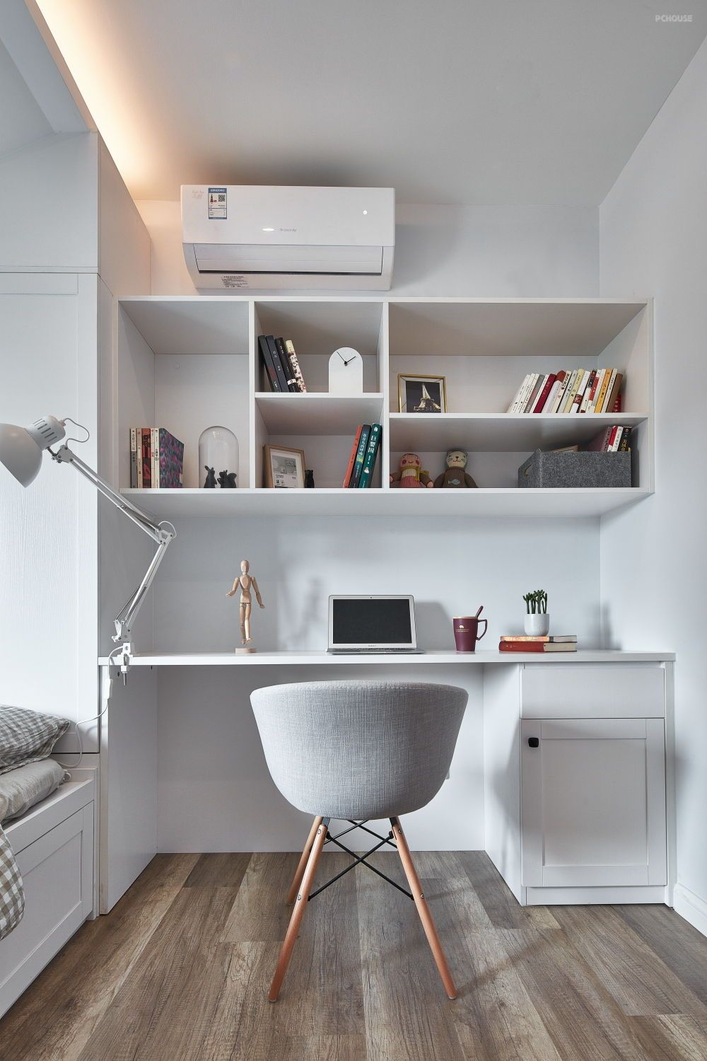 次卧集功能性与美观性于一体,既能作为客房使用,也能作为书房使用。白色系的采用让小空间更显敞亮,榻榻米床+收纳柜的设计更节省空间,也让整个次卧显得规整有序、整洁干净。 #书房