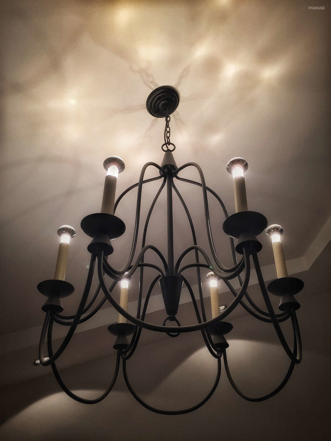 把晃眼散射光的烛泡换成了反射灯泡,向天花打光再反射下来,光线应该含蓄一点? #客厅 #吊灯