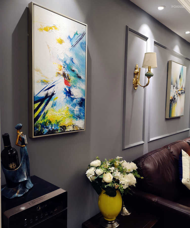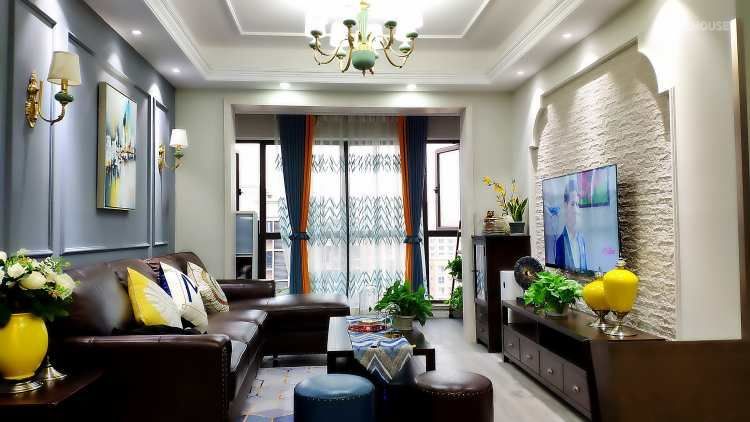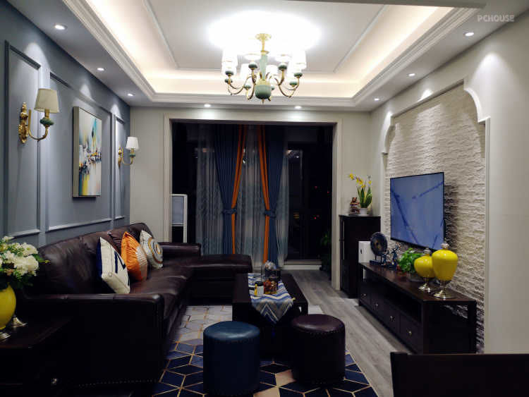 电视墙在整体考虑上,排除了仿古砖以及壁纸,,最后选择了文化砖,提升空间的质感,深浅搭配让整个空间更加有层次感