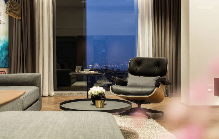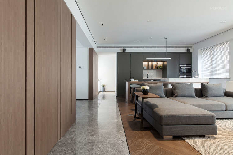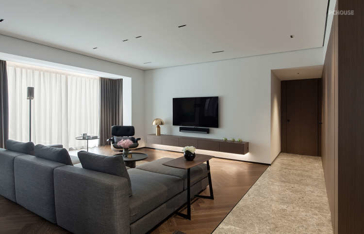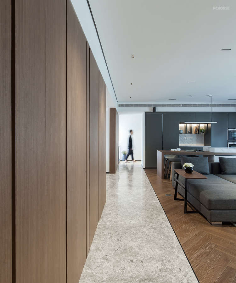 本案业主为一名金融领域的高管,以人文及入沉稳的风格概念为设定,藉由自然石材、金属、木头纹理来做深浅变化,藉此勾勒简鍊线条,带出人文气息。