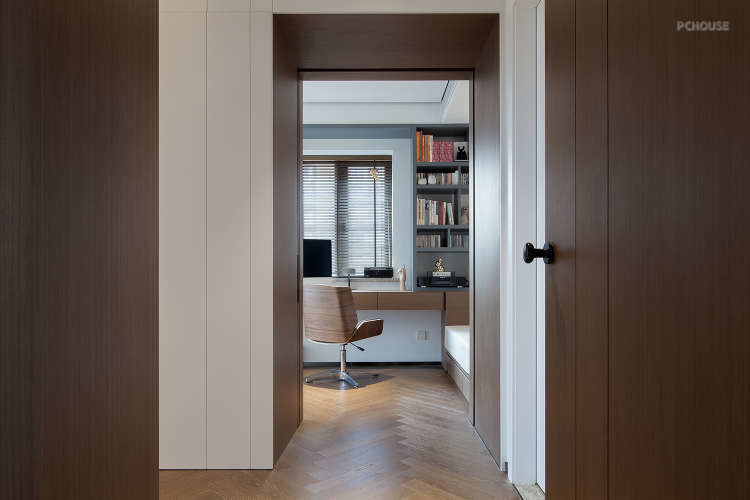 从主卧门看向书房,其实书房还有一个推拉门,隐藏到墙壁里。