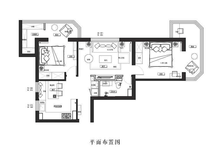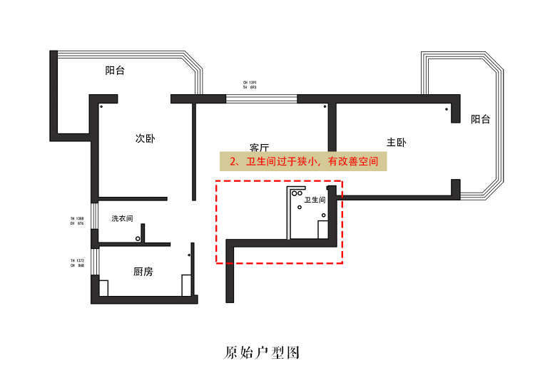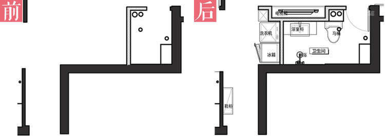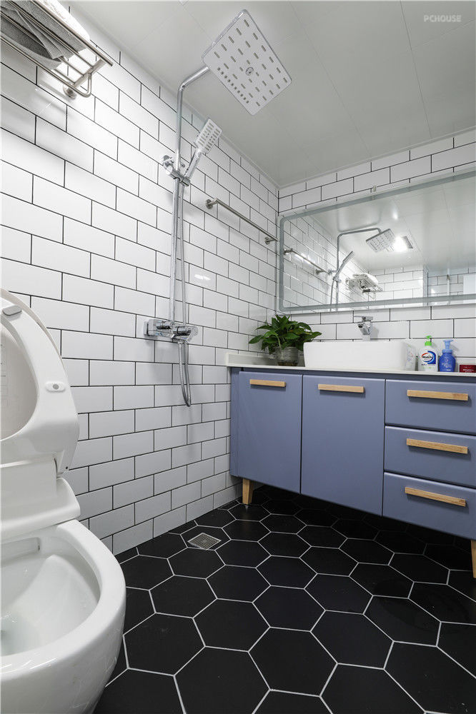 原始户型中卫生间过于狭小,不便使用,设计师在改造卫生间的同时,又重新规划了客厅空间,利用增加出来的卫生间墙壁作为客厅的电视背景墙,有预留出来冰箱洗衣机的位置,如此一来,空间与空间相互交融,使居家生活更加方便舒心。