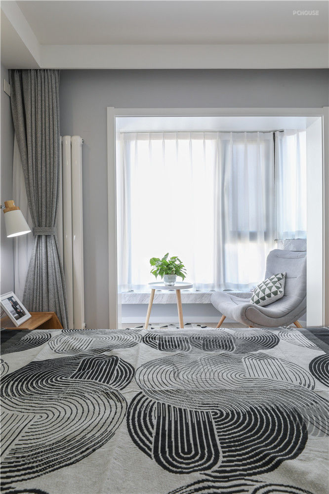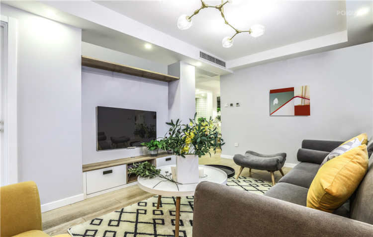 灰色的布艺沙发作为主视觉,加几个跳色的抱枕,清新又不影响稳重,舒适简约。