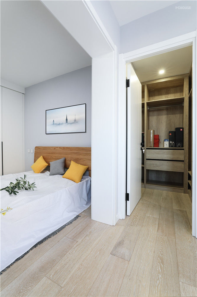 选用白色的满墙衣柜,让空间更加开阔明亮。
