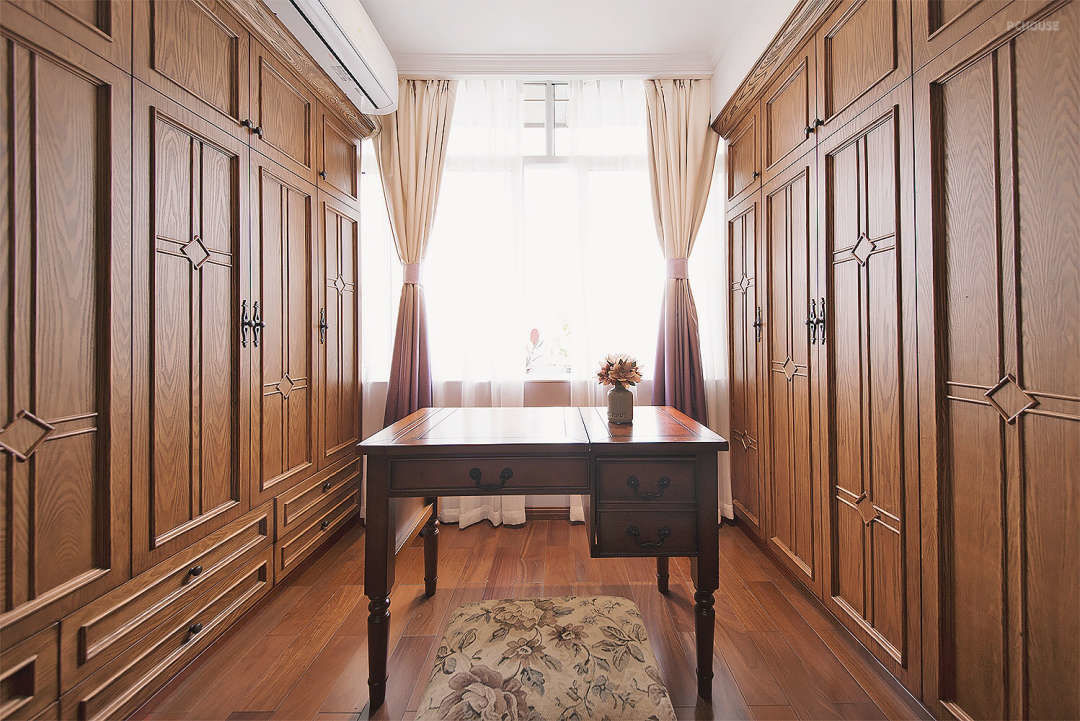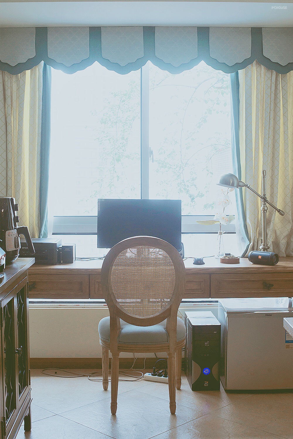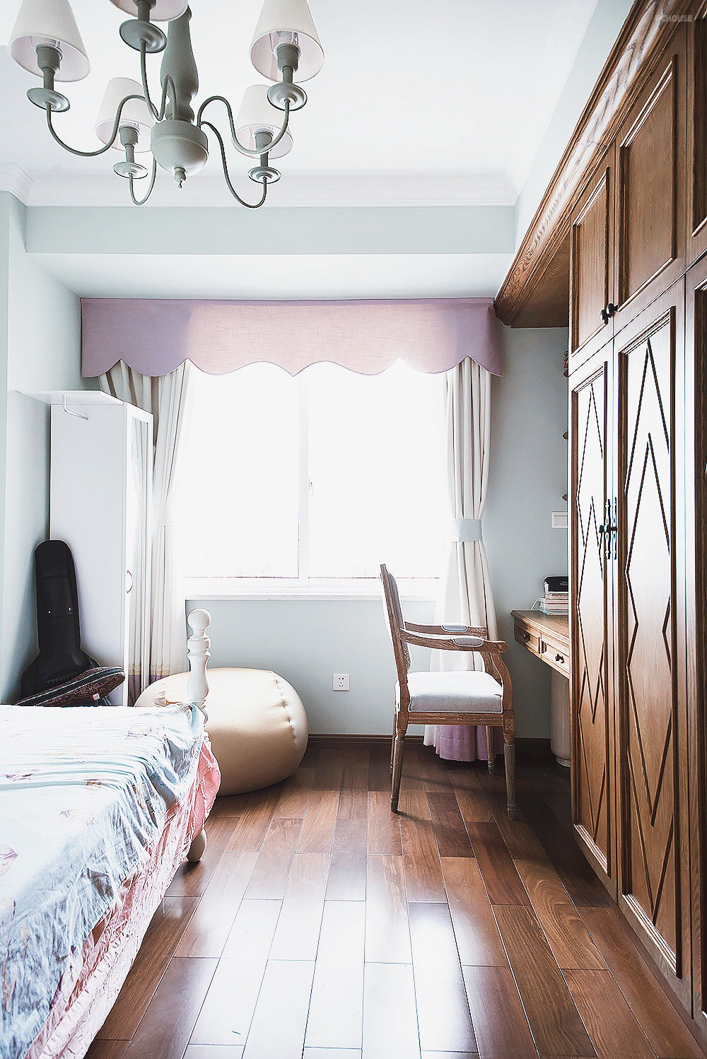 儿童房以功能为主。女孩子的衣橱不能少,现场制作的书桌与整体木作和谐。淡淡的豆绿色墙面,搭配柔柔的粉紫色窗帘。少一分童趣,多一分温柔,便是十几岁少女的气息了。 #儿童房