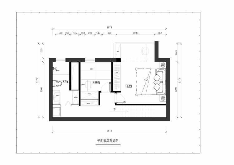 二层平面布置图解决了原先上来过于开阔的问题,还挤出了一间儿童房修改了格局之后,整体上三口之家生活,储物空间已经完全足够了~当然也保留了足够的活动空间