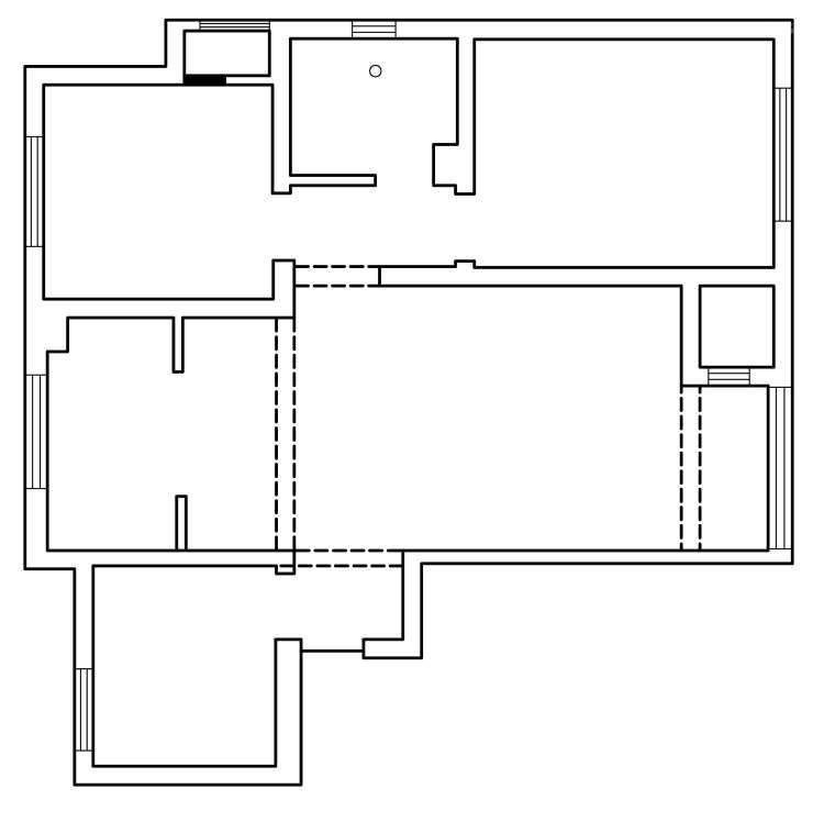 原始结构户型图:比较传统的H户型,厨房、餐厅、书房空间是本次设计改造的重点。