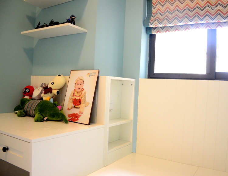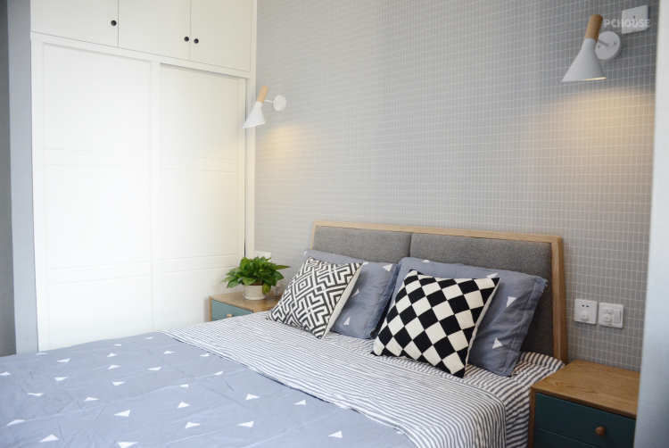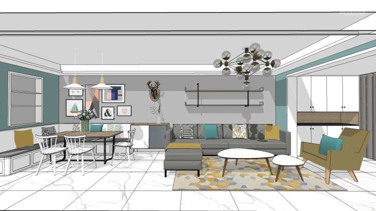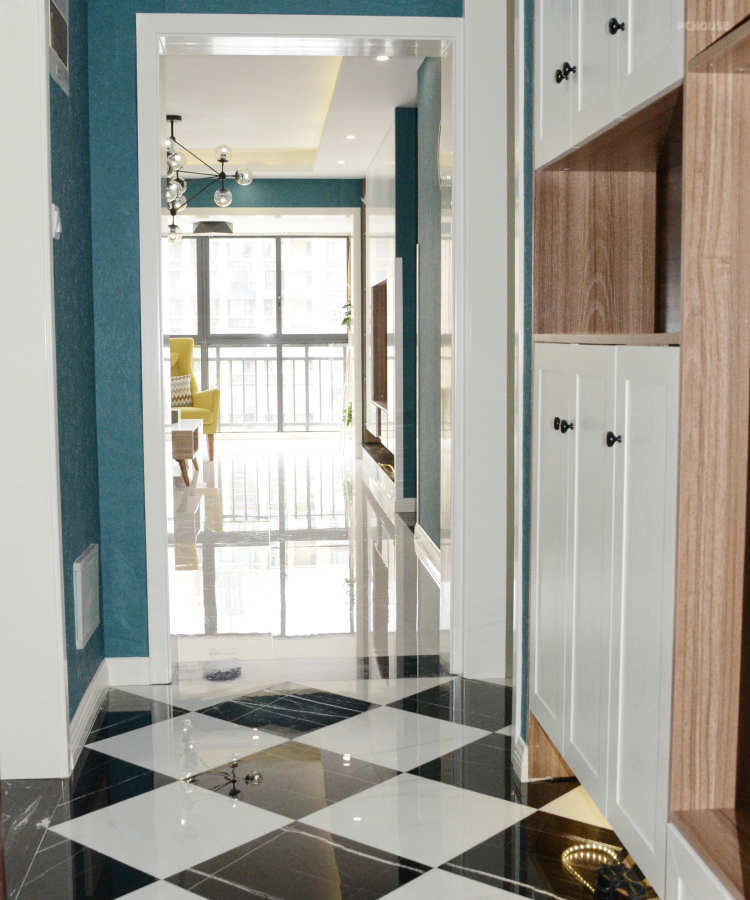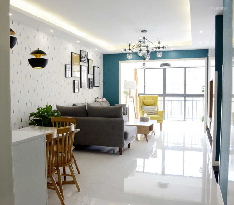 ①现在很多户型的通病,一进门就是晾晒的衣服、洗衣机、热水器、天然煤气表、管道、以及拖把池....给人的感觉就是杂乱,没有生活品质。入户作为回家的第一印象,应该是给人以放松、干净、温馨的感觉。②考虑到入户利用鞋柜隔分了玄关与生活阳台区域,厨房光线变差,因此在厨房与餐厅之间保留了小窗,既增加了采光,又增加了厨房与客餐厅之间的互动。③利用客厅电视墙与餐厅墙的落差,增加储物,定制整体的电视柜,隐藏杂乱的插座线,既美观又实用,值视觉上也让空间更加方正。④打掉原有的客厅与阳台的窗户,让空间更开阔,阳光直接照进来。